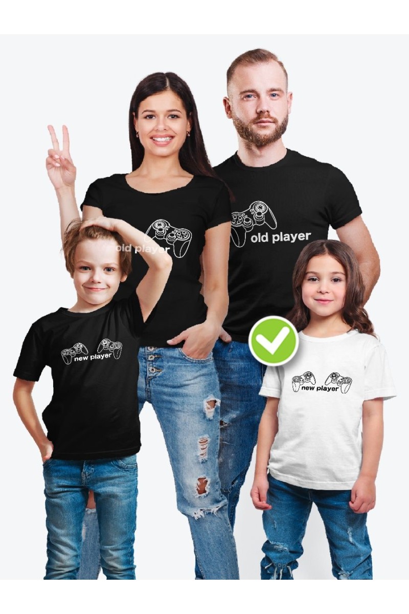 Футболки Фэмили Лук для всей семьи с принтом "New Player". Семейные прикольные парные одинаковые футболки Family Look с надписями на двоих, на троих, на четверых в одном стиле: мама, дочка, папа, сын. Одинаковая одежда подходит на годик семье, для фотосессии, в подарок, на свадьбу. Каждый принт family look представлен в белых футболках и в черных. Футболки Фемили Лук - идеальный подарок для семьи с ребенком. Прикольные семейные футболки с надписями можно заказать для семьи с ребенком на троих, на четверых, на пятерых. Добавьте в корзину свой комплект: для двоих (мама и дочка, мама и сын, папа и дочь, на 2, 3, 4, 5 человек и т.д.), для троих, для девочек или для семьи из пятерых человек. Футболки идут размер в размер и должны смотреться свободно, поэтому не следует выбирать слишком маленький размер, а лучше выбрать размер с запасом.Состав 100% хлопок. Футболки для взрослых - унисекс. Выбирайте для мужчин размер с запасом (на 1-2 размера больше).