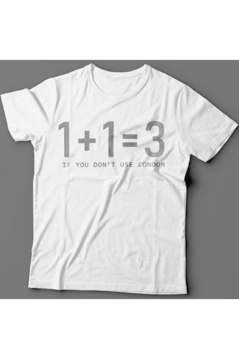 Прикольная, смешная мужская футболка с надписью "1+1 3 if you don't use condom". Футболка с прикольным принтом подходит для подростков, для мужчин, для взрослых. Отлично подходит как подарок на День Рождения папе, парню, мужу. Прикольная надпись на футболке выделит вас из толпы и подчеркнет уникальность. Футболки идут размер в размер и должны смотреться свободно, поэтому не следует выбирать слишком маленький размер, а лучше выбрать размер с запасом. По умолчанию в товаре указан выбор мужских размеров. Женские размеры - на 1 размер меньше чем мужские. Все мужские футболки со смешными надписями состоят из 100% хлопка. Цвет: белый, с серым принтом.