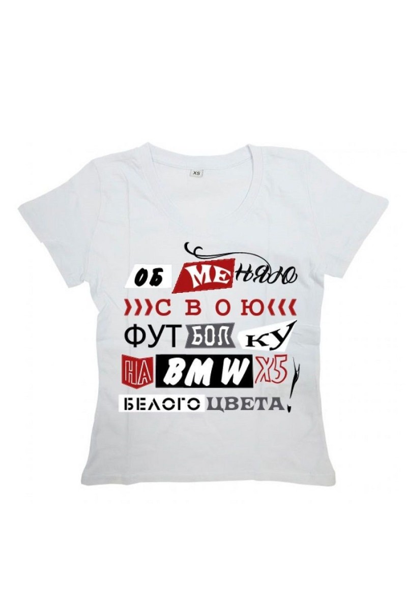 принт Обменяю свою футболку на BMW X5 белого цветаСостав