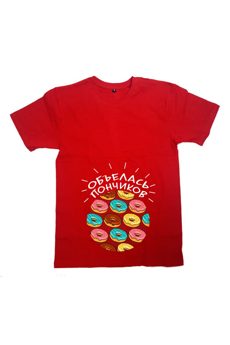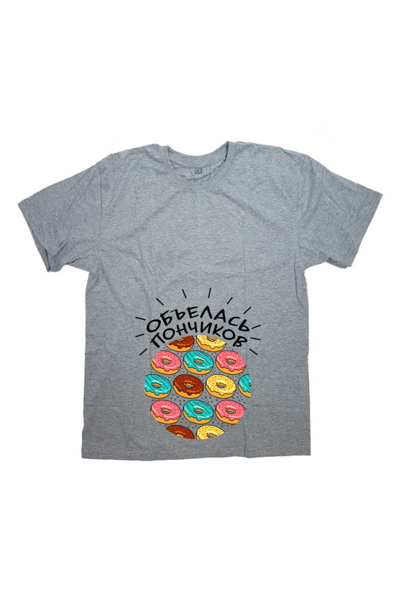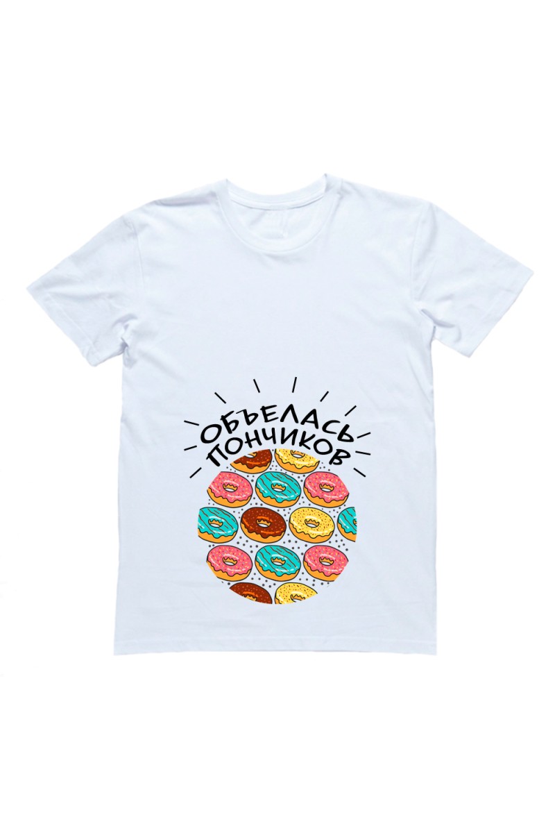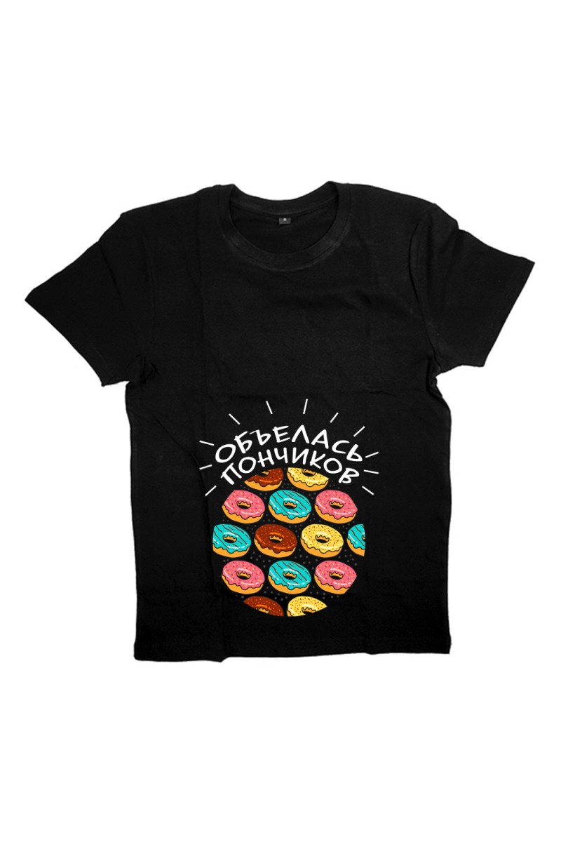 Футболка для беременных с надписью "Объелась пончиков"