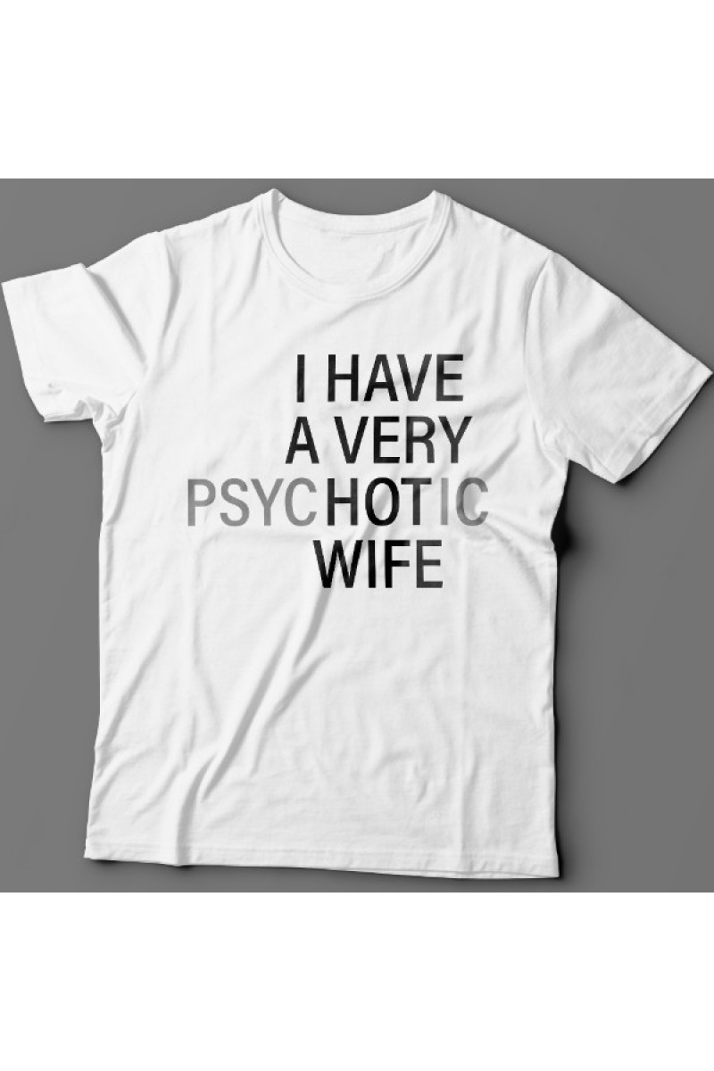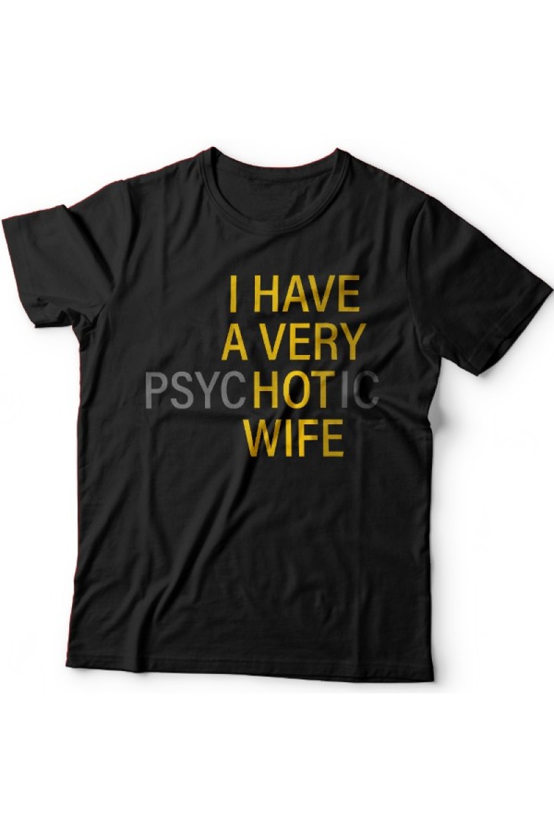 Прикольная футболка с надписью "I HAVE A VERY (psy)HOT(ic) WIFE"