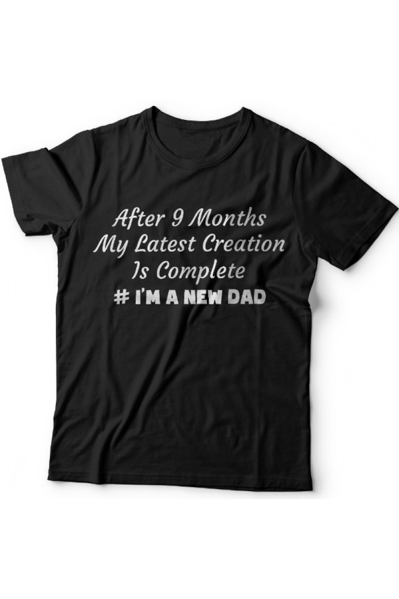 Футболка для папы с надписью "After 9 months my latest creation is complete"