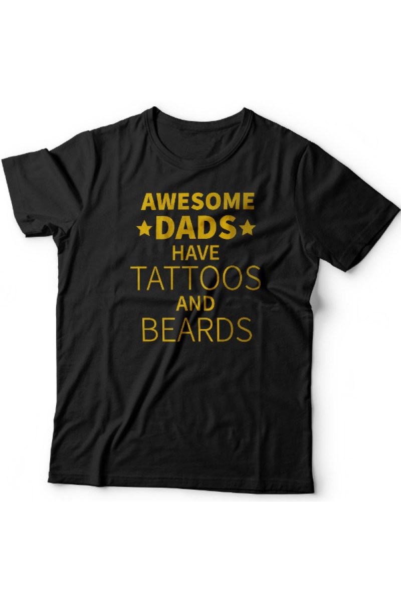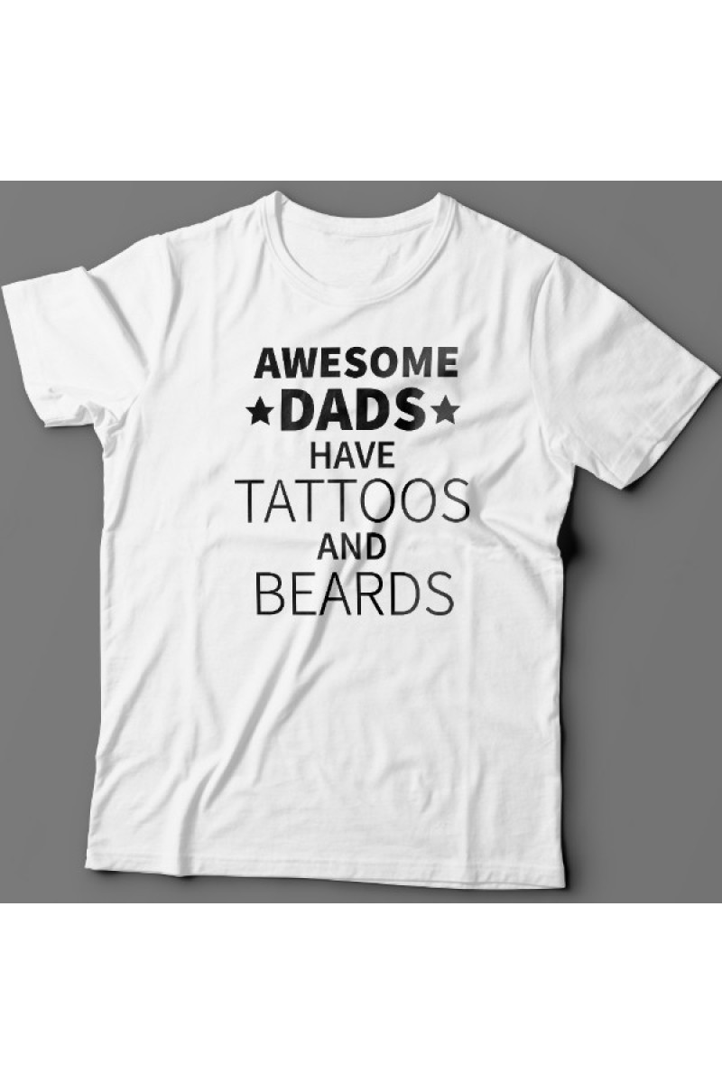 Футболка для папы с надписью "Awesome dads have tattoos and beards"