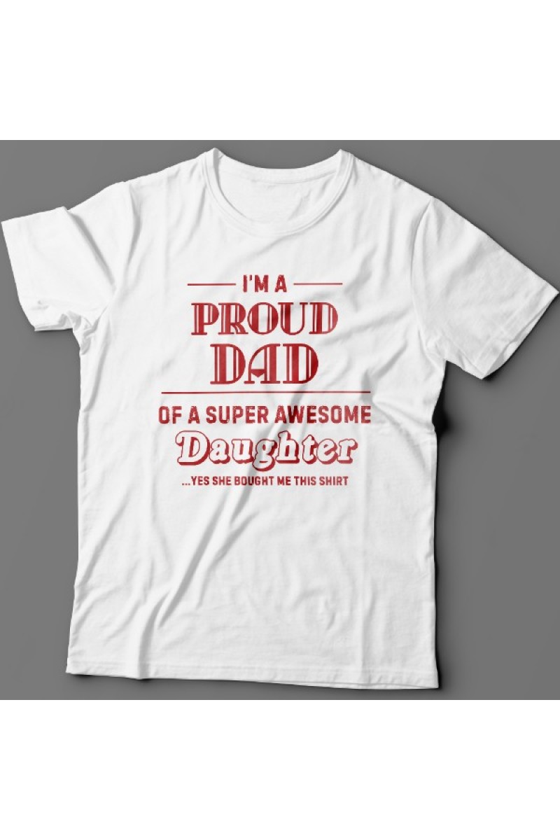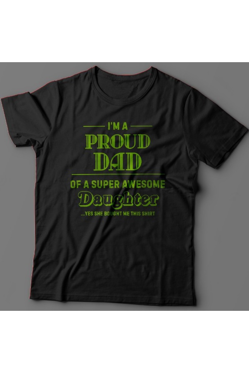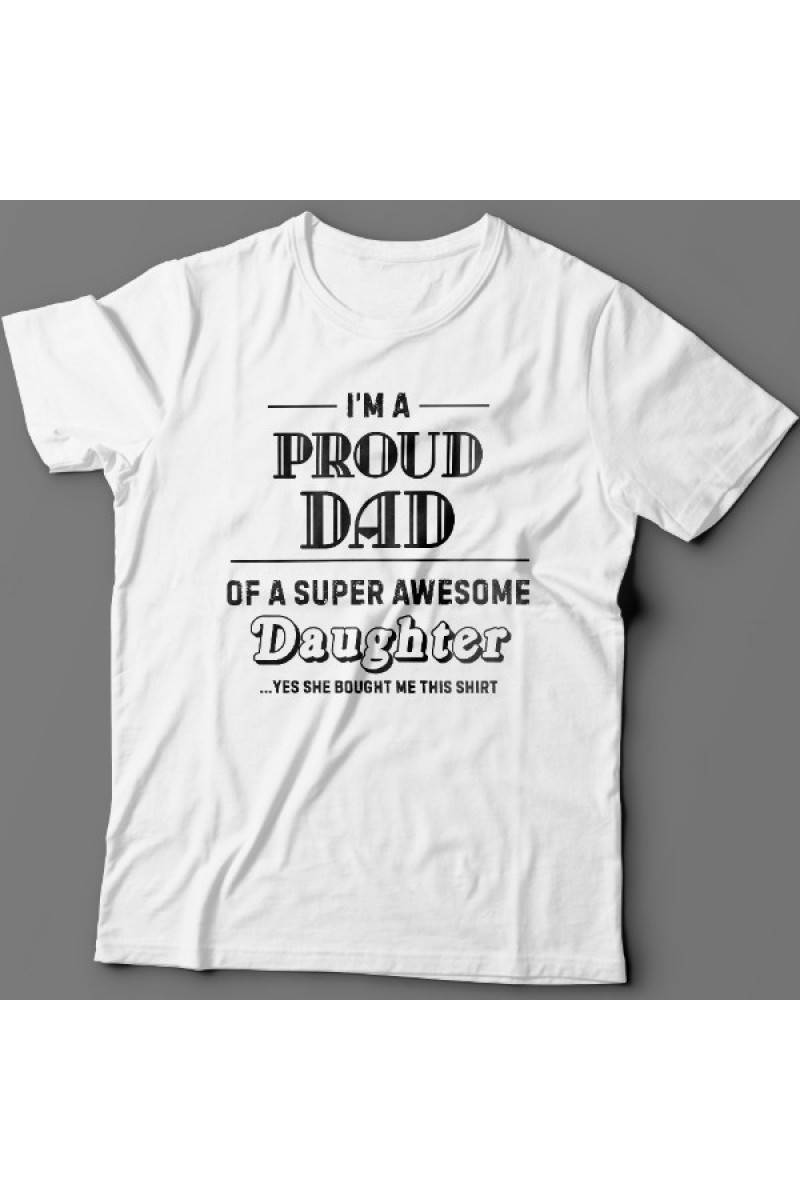Футболка для папы с надписью "I'm a proud dad of a super awesome daughter (...yes she bought me this shirt)"