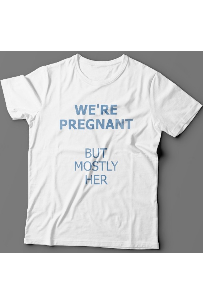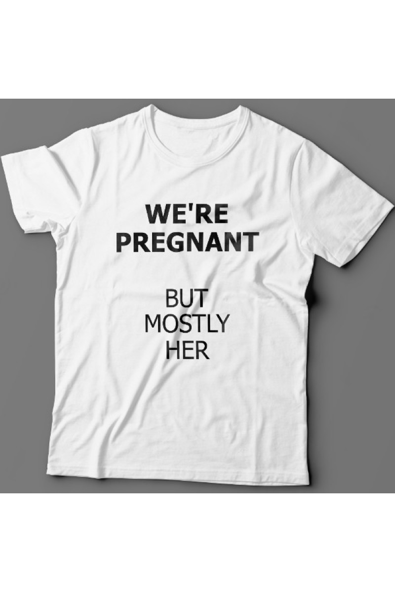 Веселая футболка в подарок для папы "We are pregnant (But mostly her)" - Мы беременны (Но она больше).