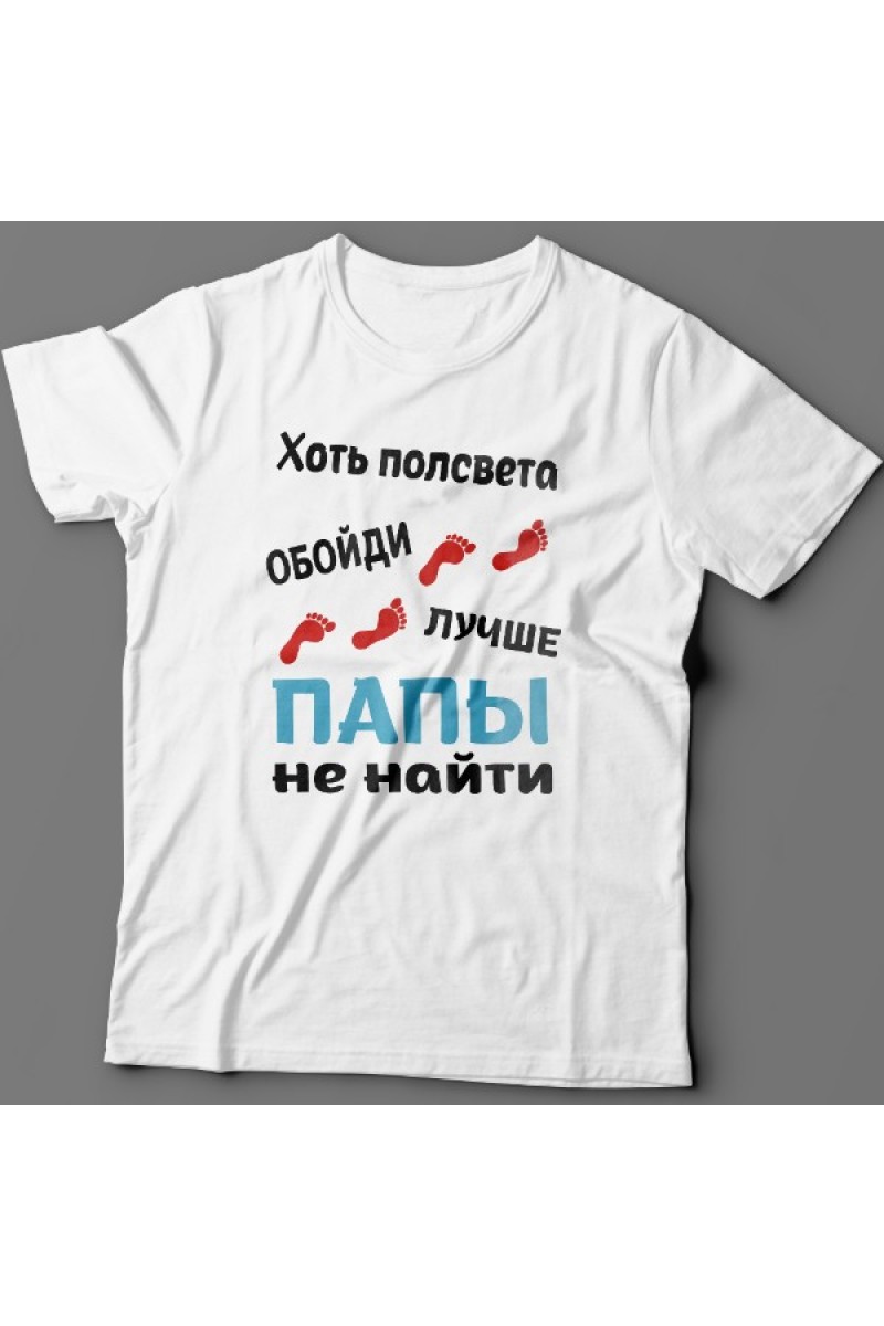 Футболка для папы с надписью "Хоть полсвета обойди, лучше папы не найти"