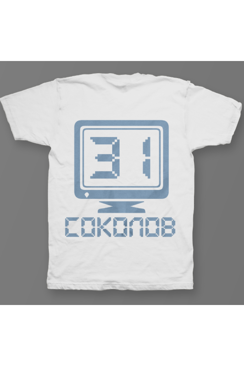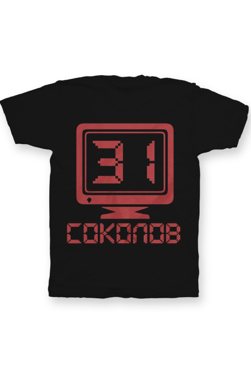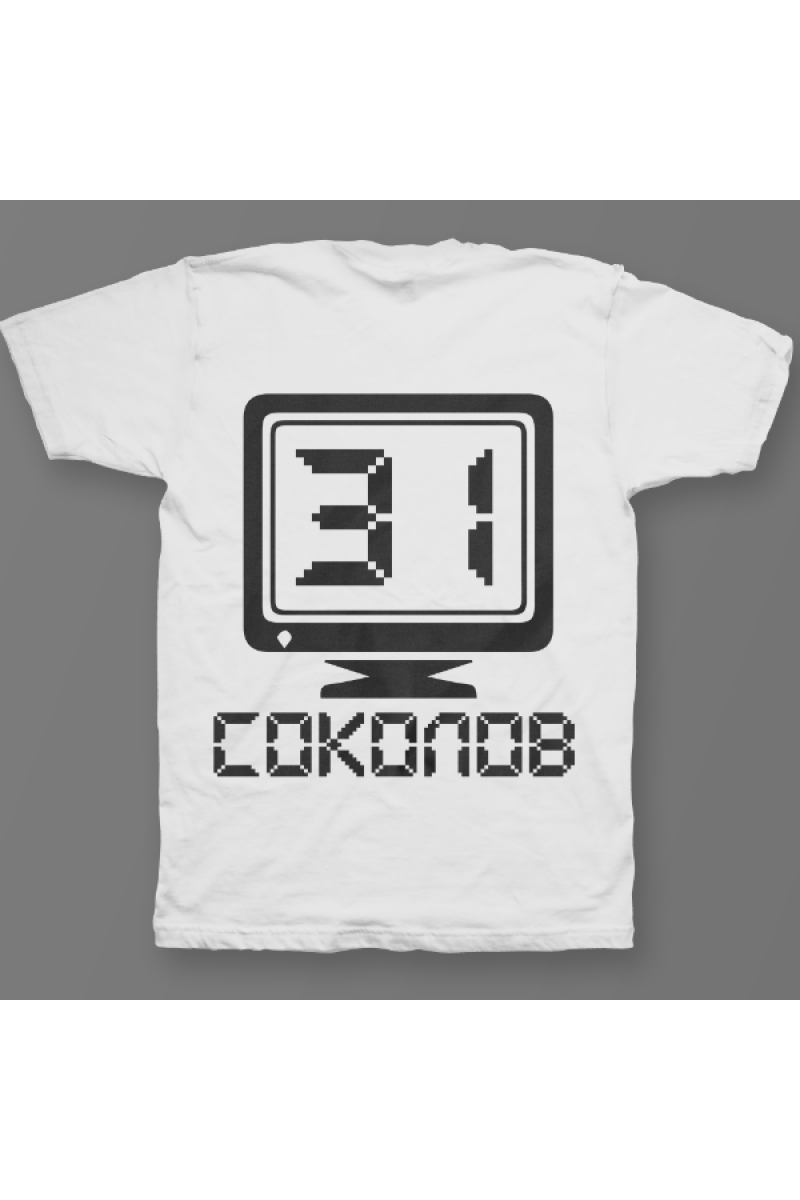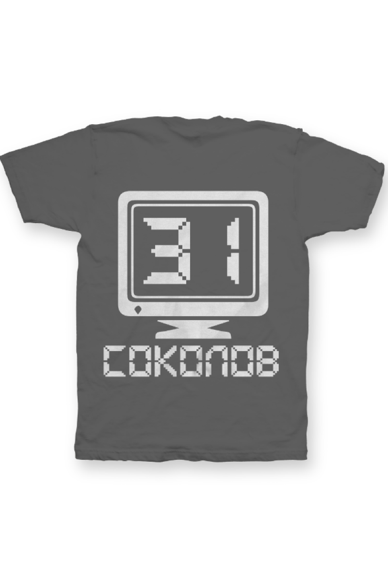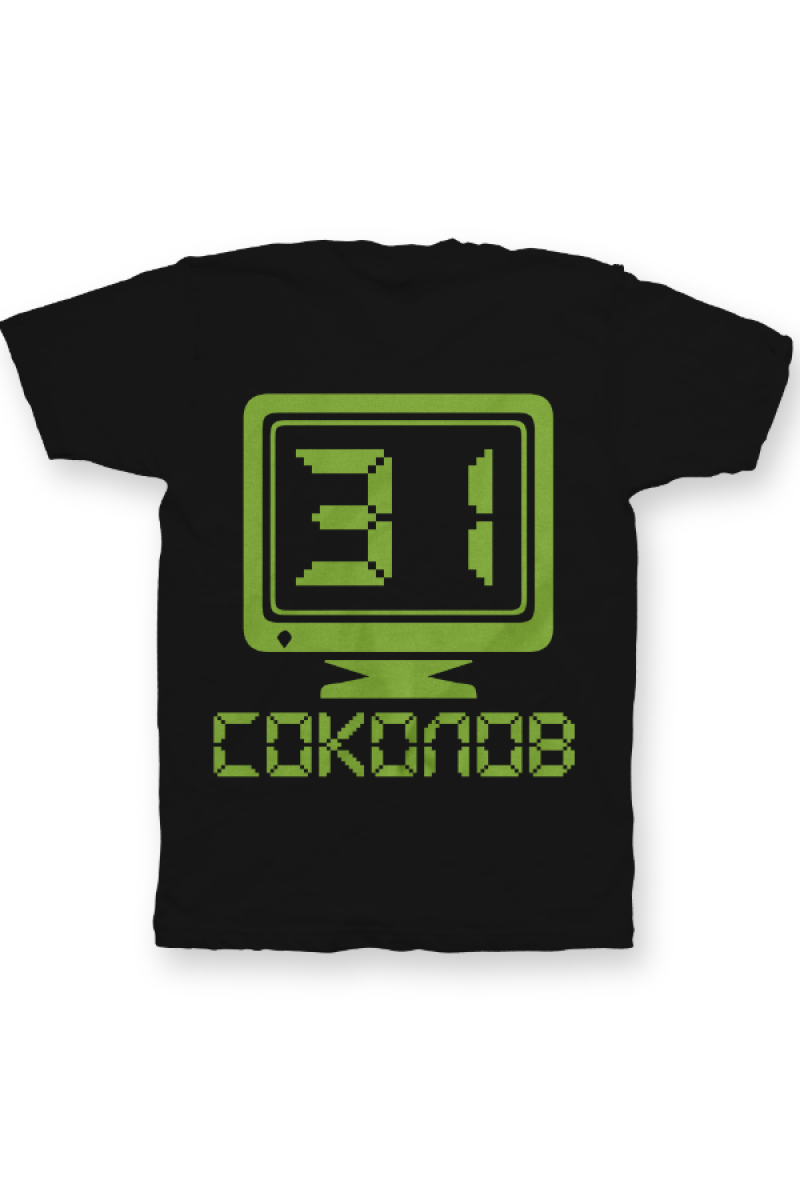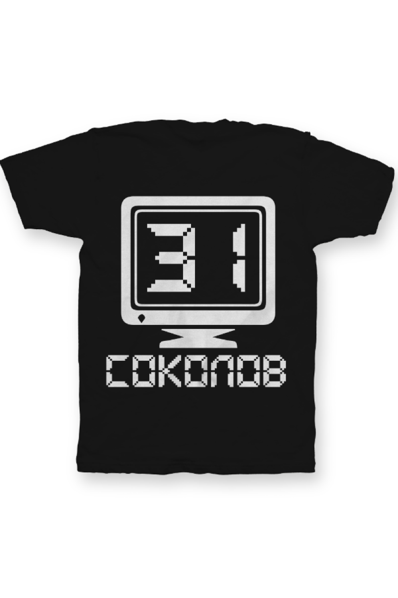 Именная футболка с аналоговым шрифтом. Помимо надписи на футболке есть изображение олдскульного монитора.