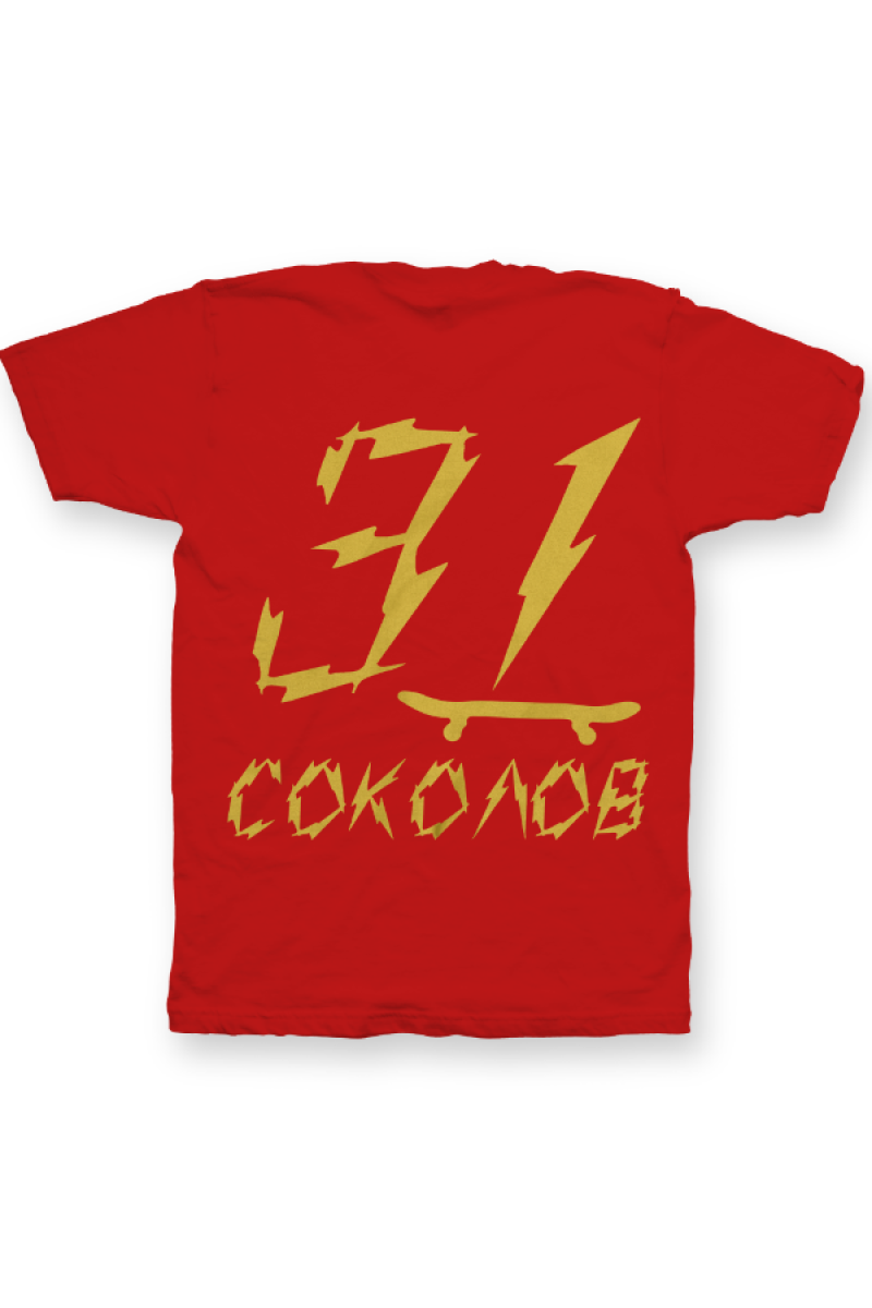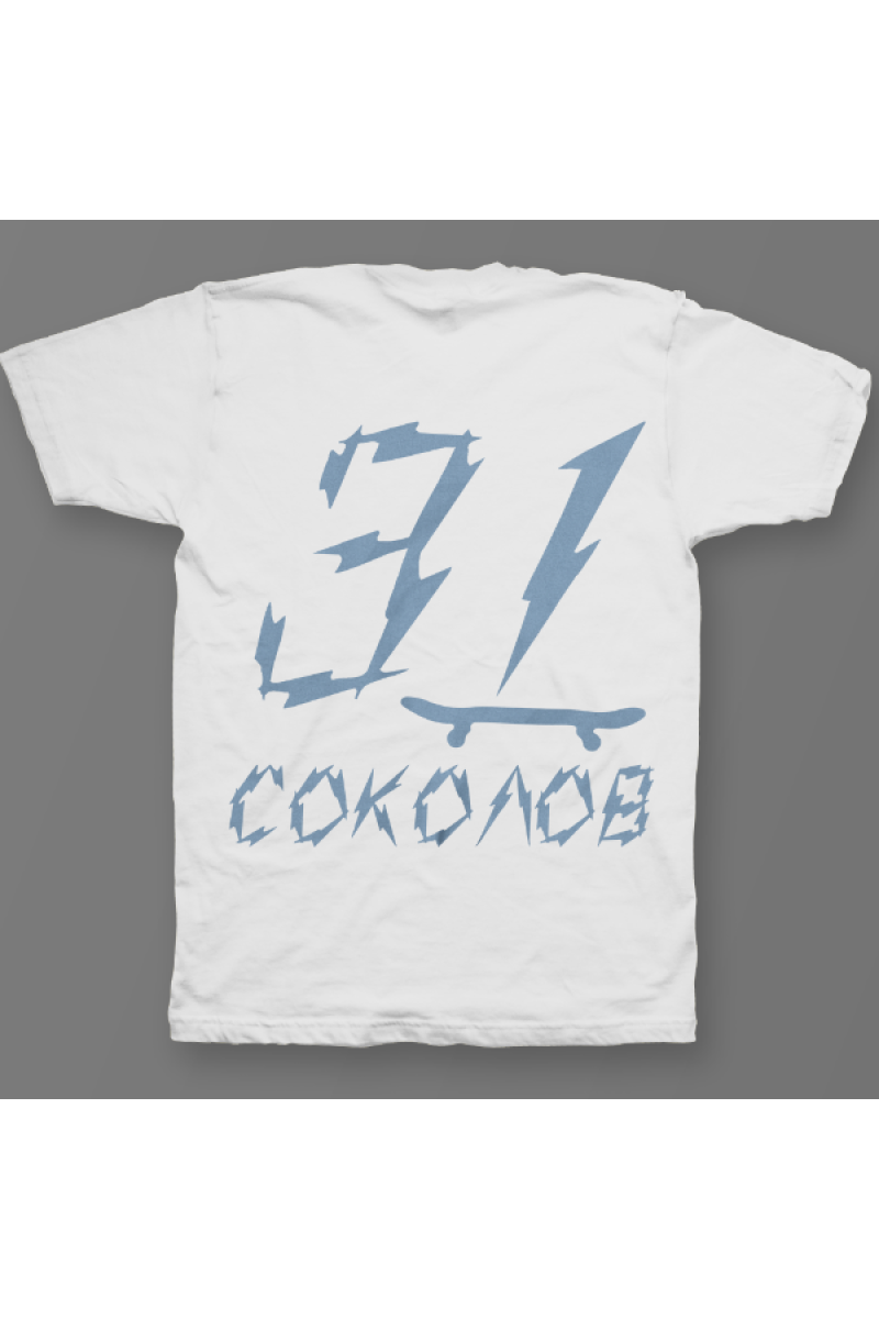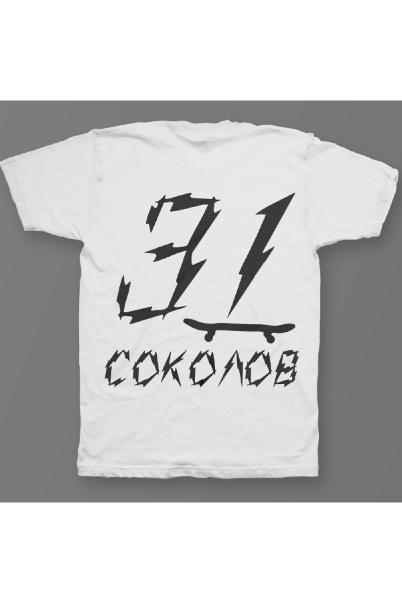 Именная футболка с бунтарским шрифтом. Помимо надписи на футболке есть изображение скейтборда.