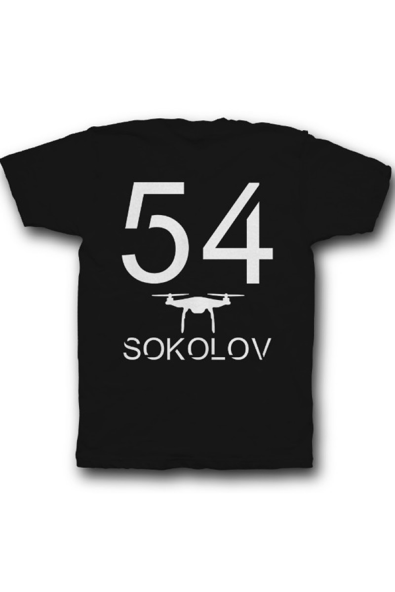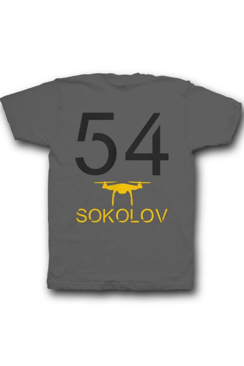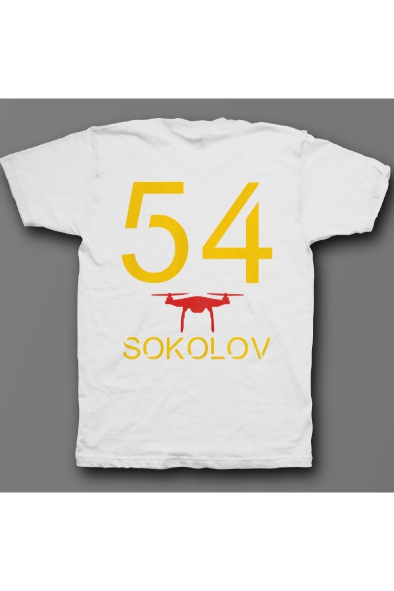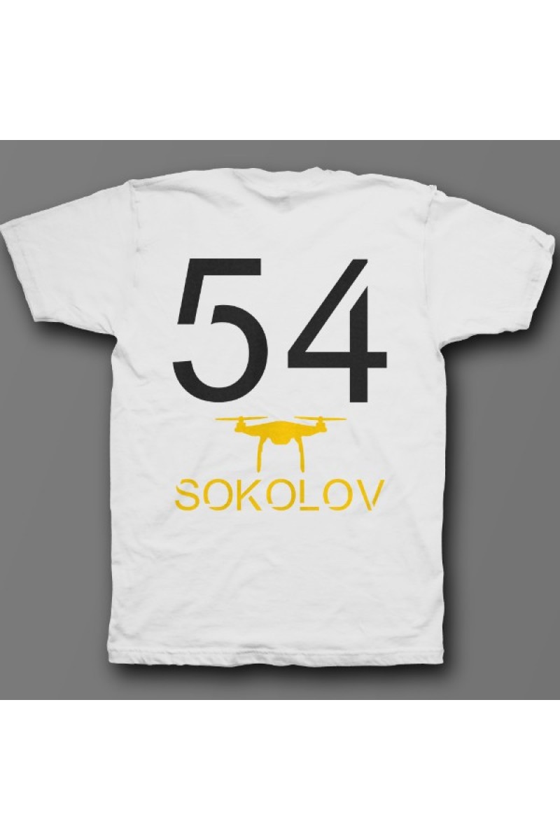 Прикольная именная футболка с футуристичным шрифтом. Помимо надписи на футболке есть изображение дрона.