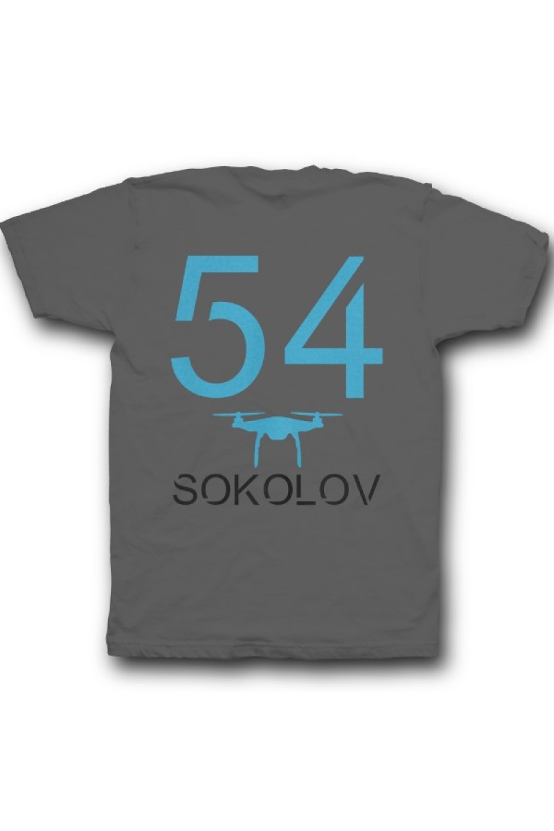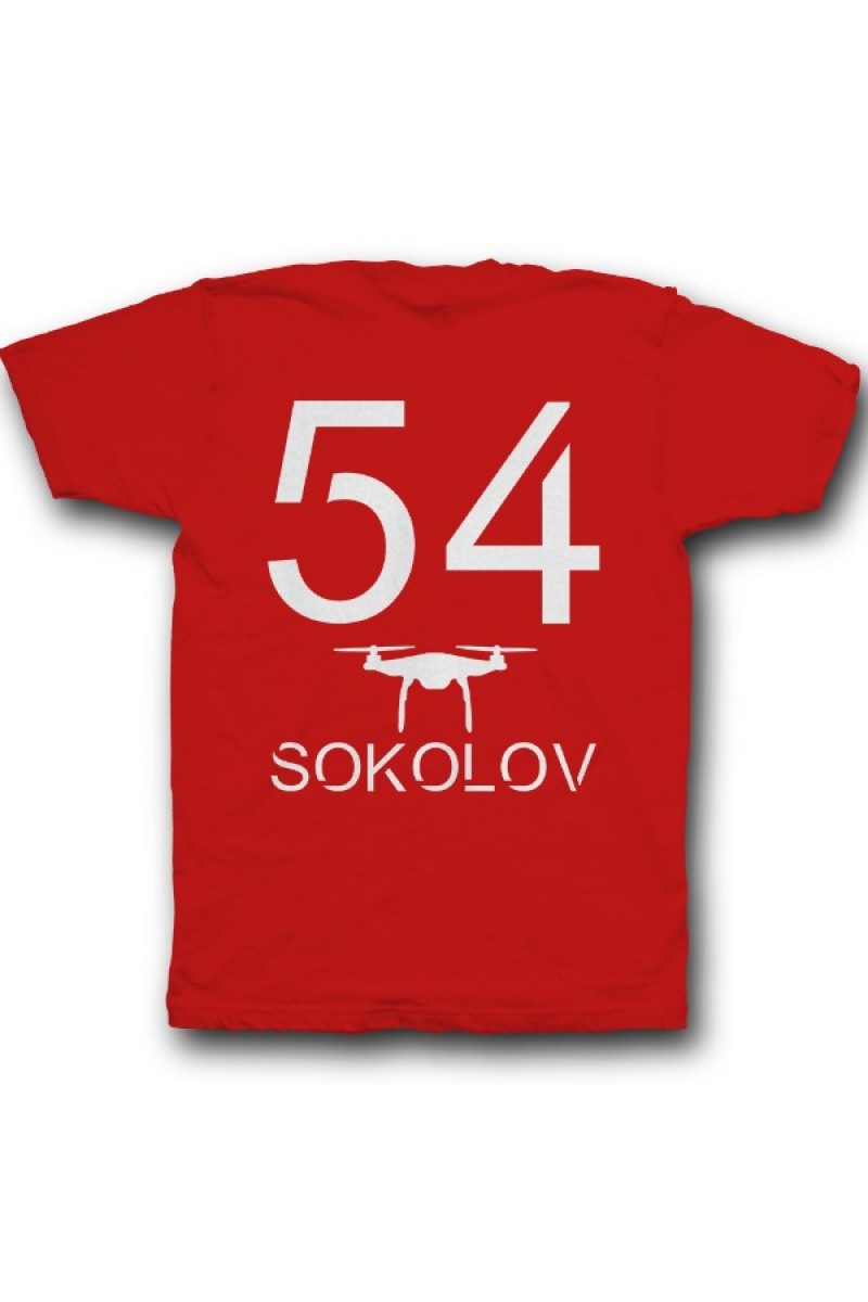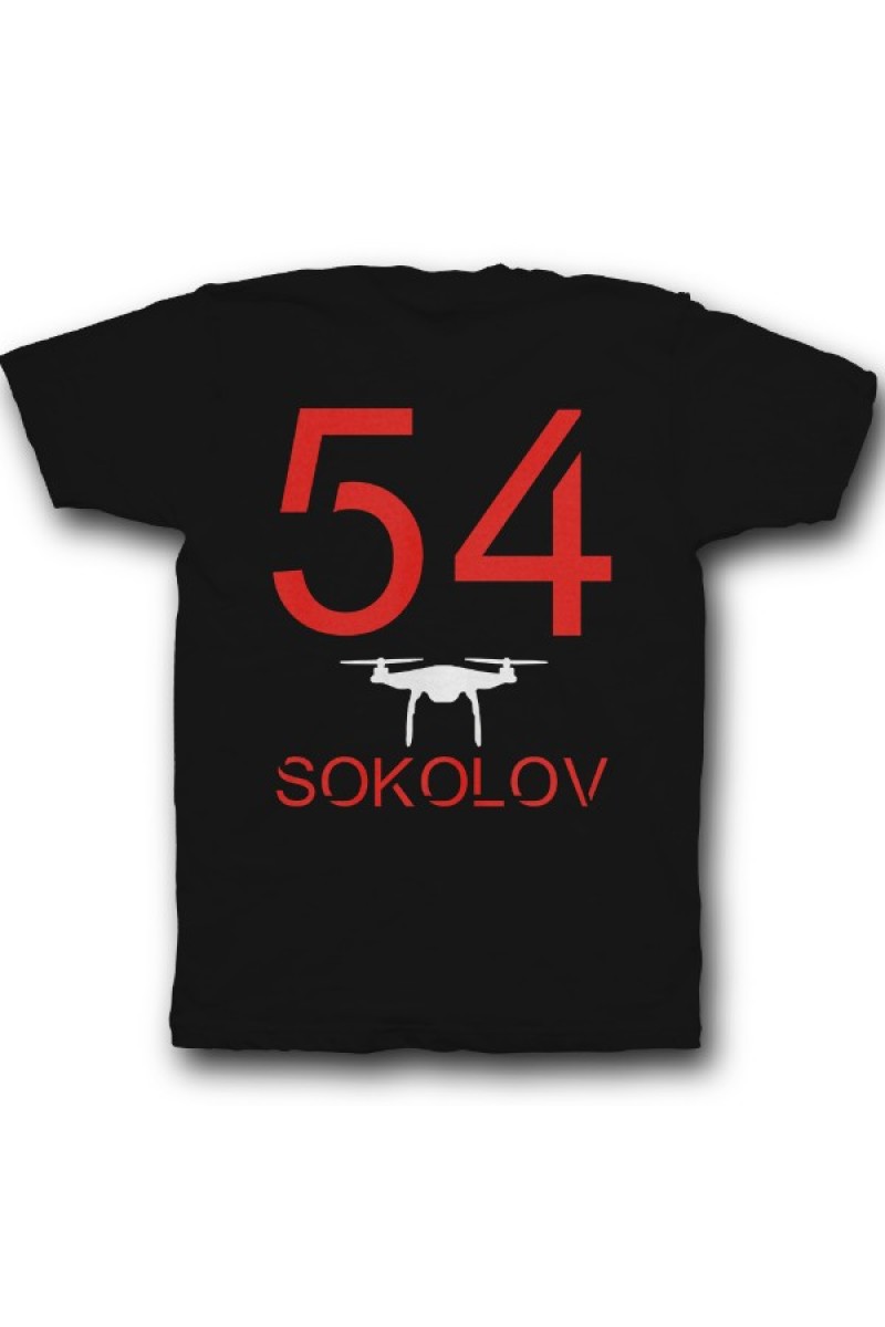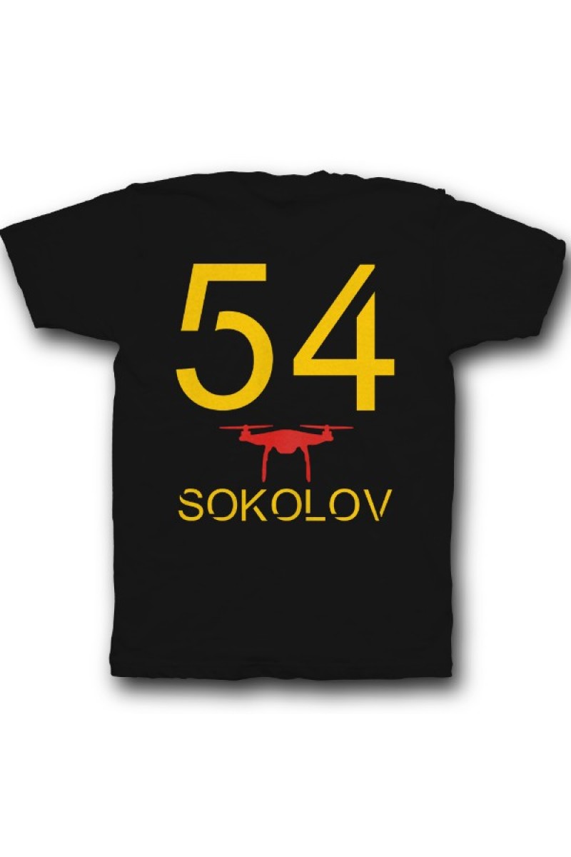 Прикольная именная футболка с футуристичным шрифтом. Помимо надписи на футболке есть изображение дрона.