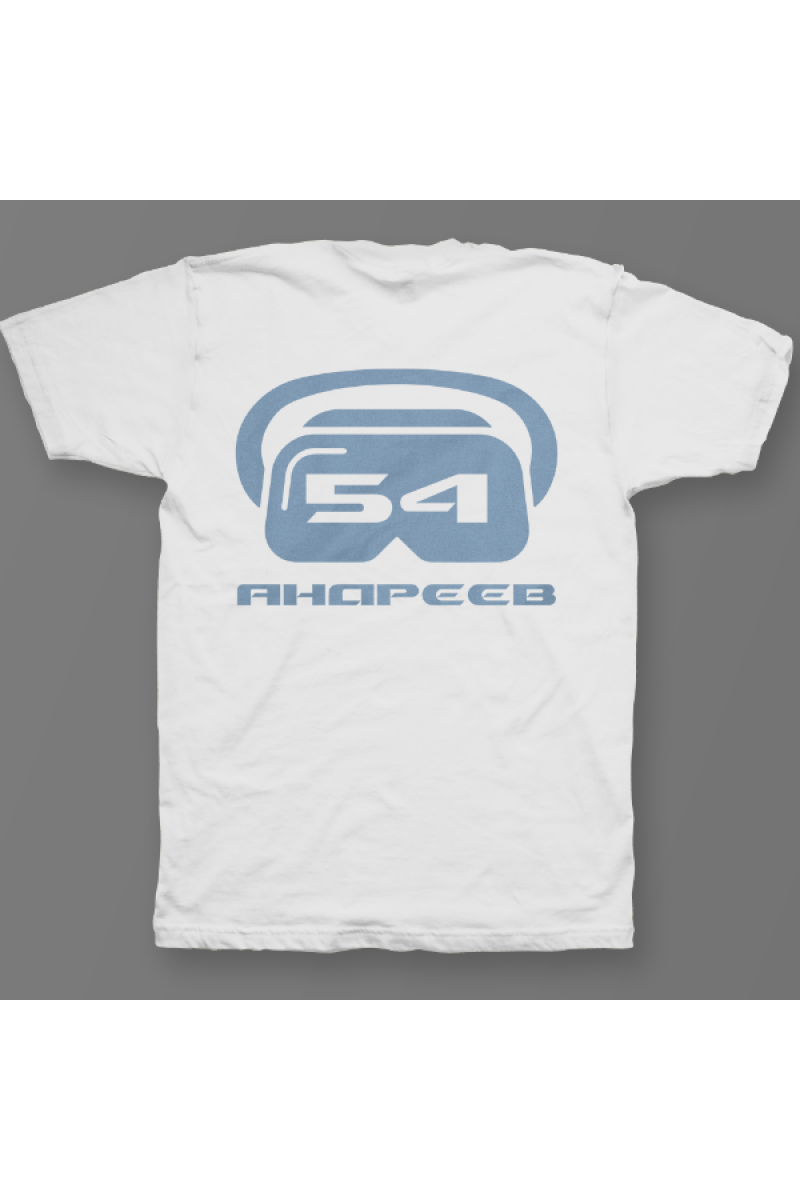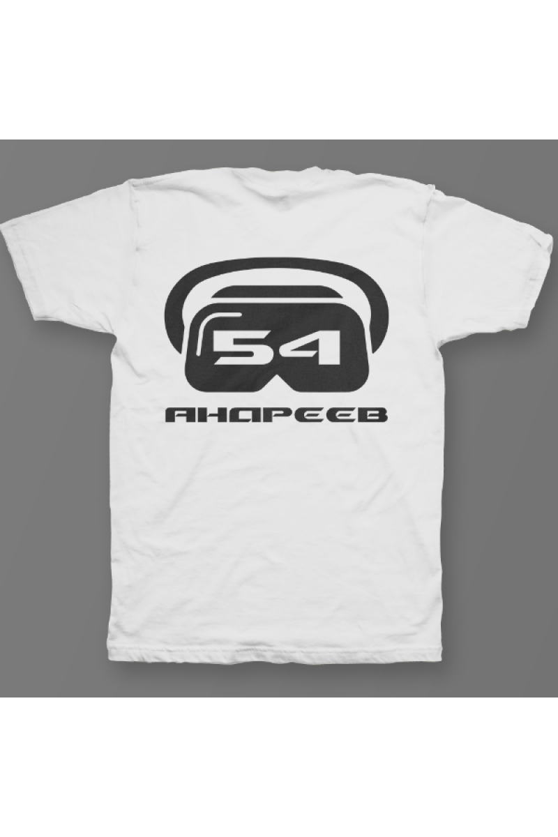Именная футболка с футуристичным шрифтом. Помимо надписи на футболке есть изображение шлема виртуальной реальности.