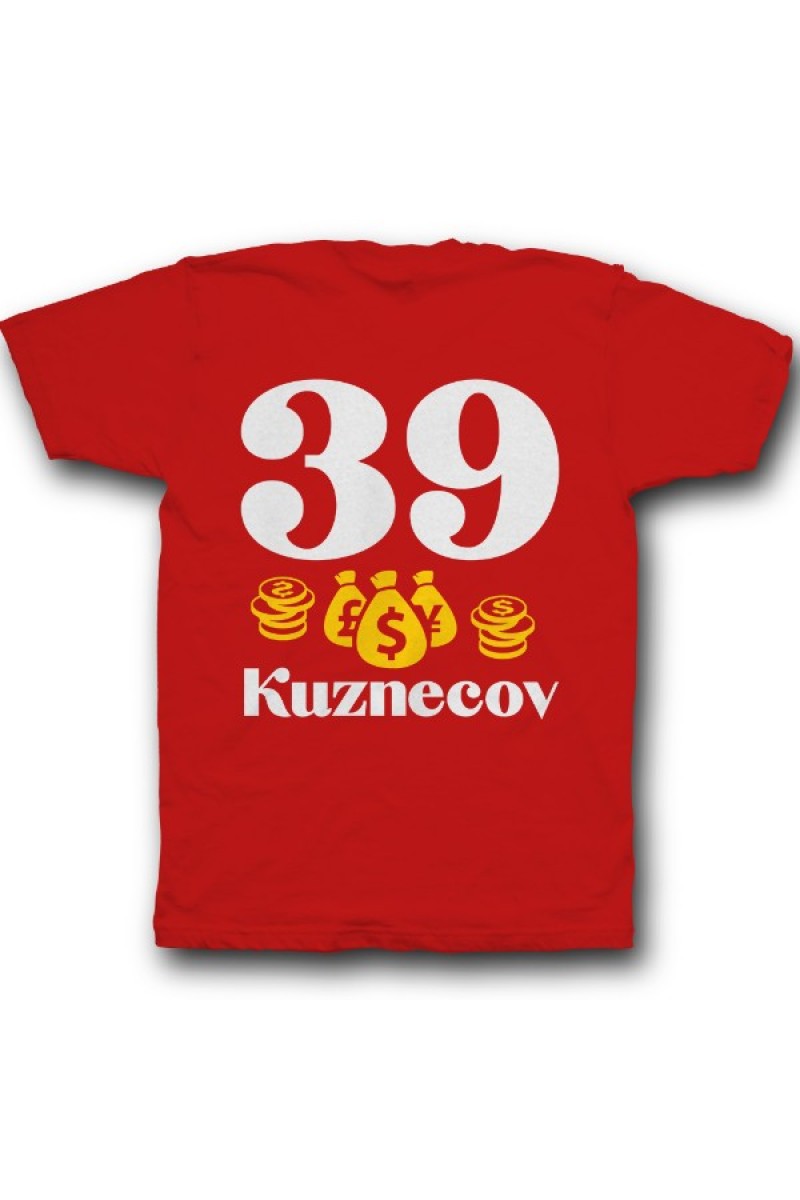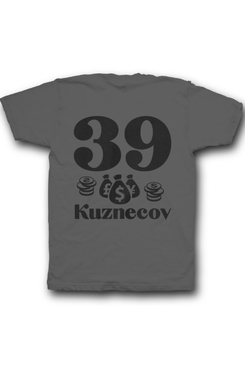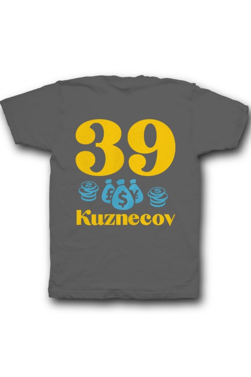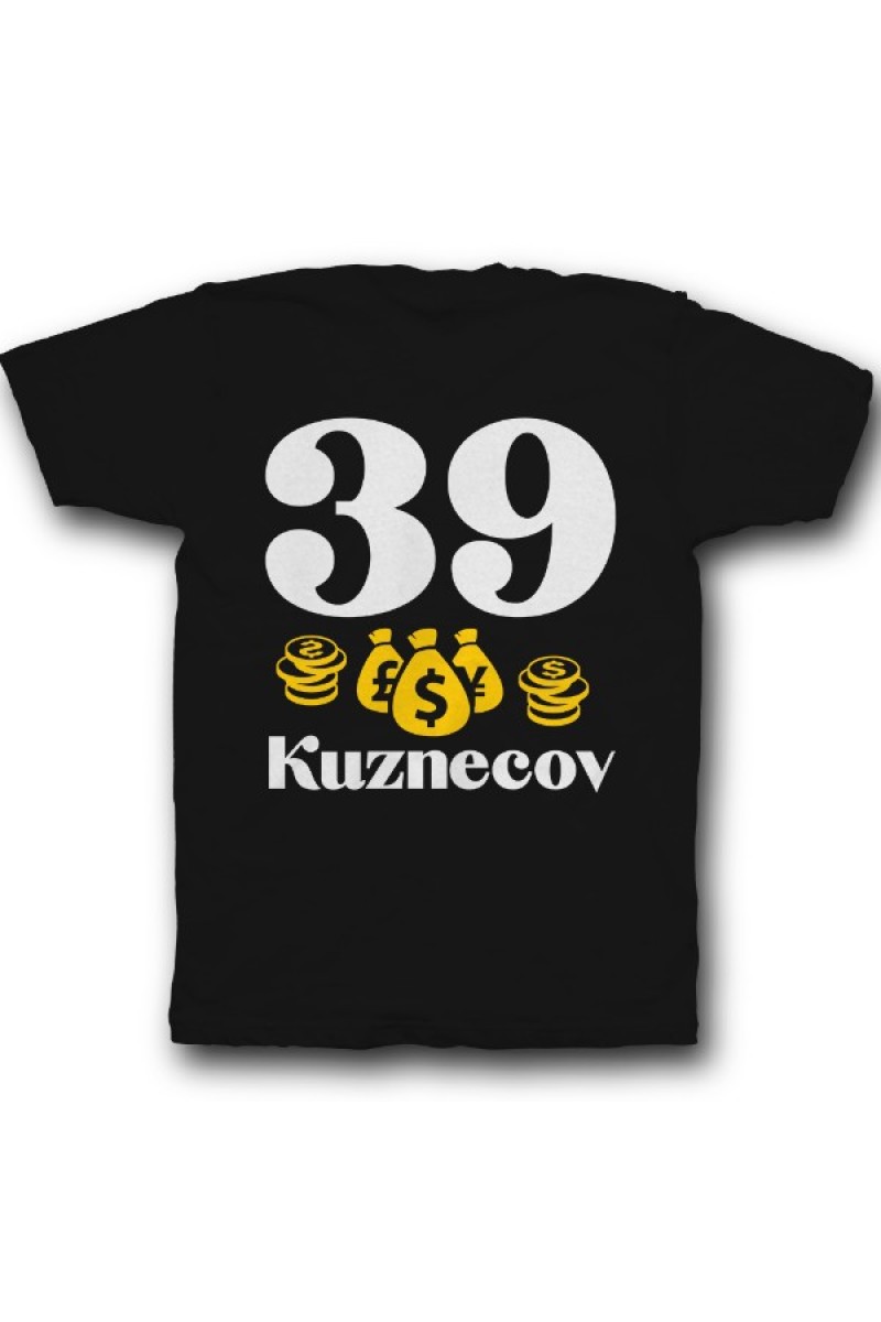 Прикольная именная футболка с мажорным шрифтом. Помимо надписи на футболке есть изображение мешка денег и монет.