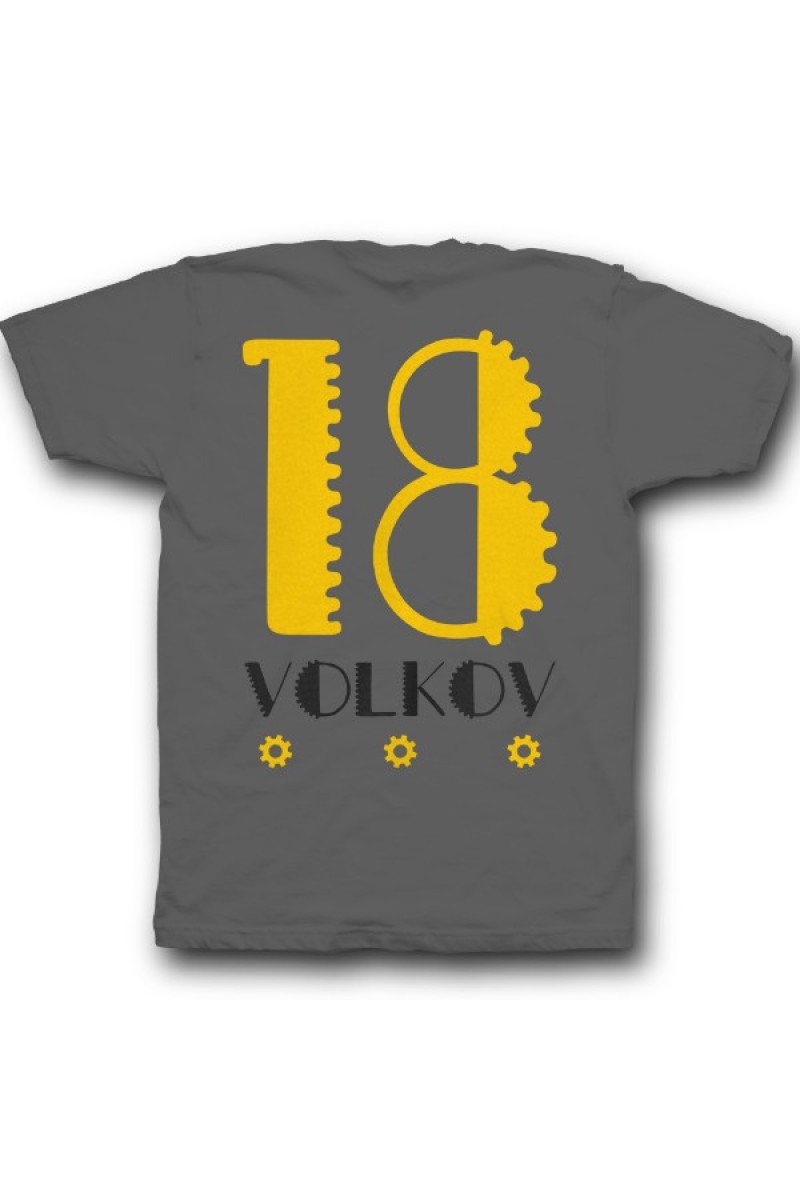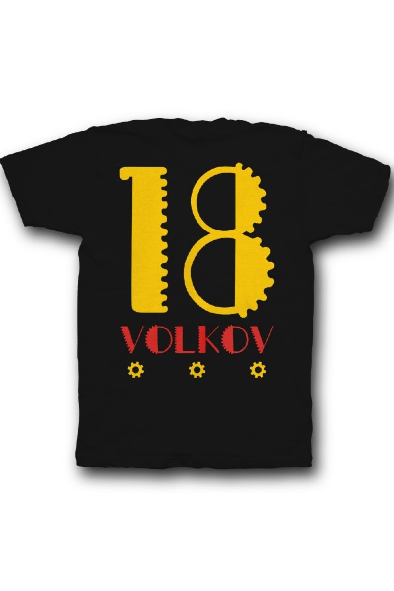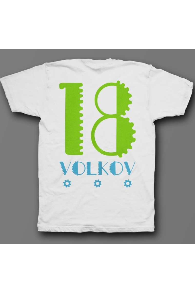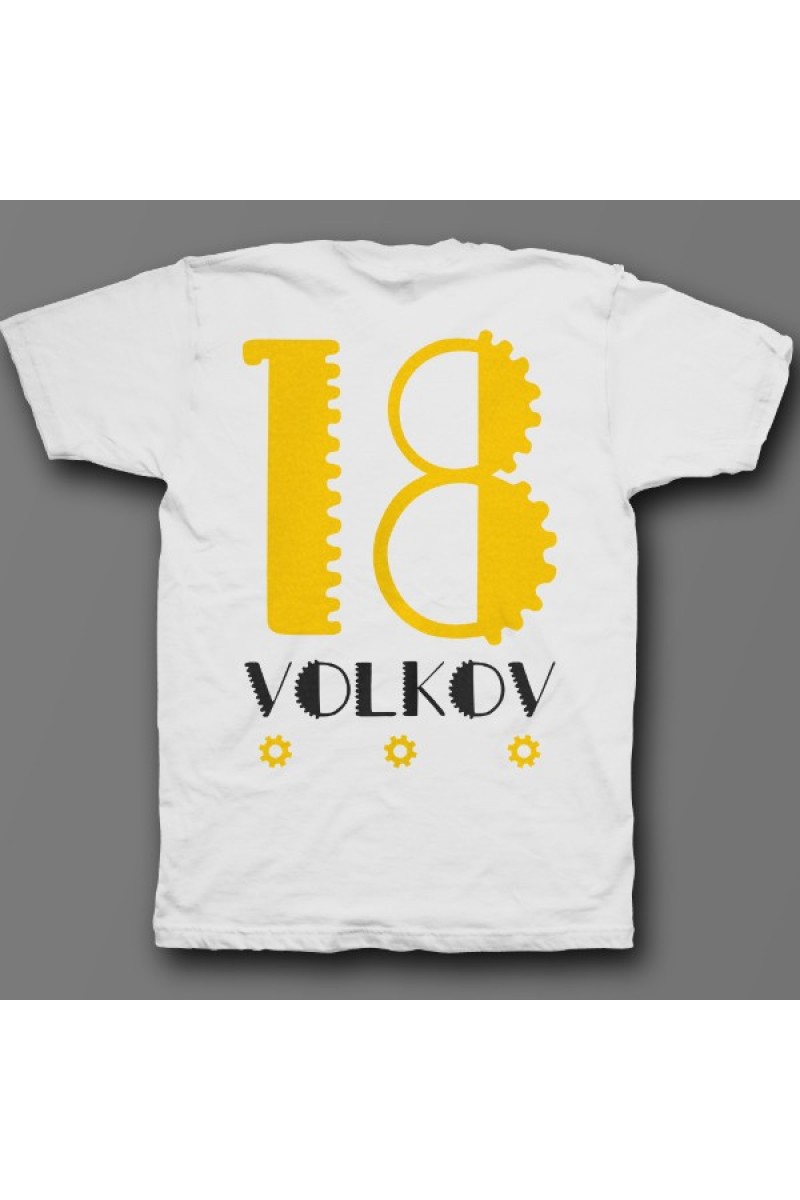 Прикольная именная футболка с механическим шрифтом. Помимо надписи на футболке есть изображение шестеренок.