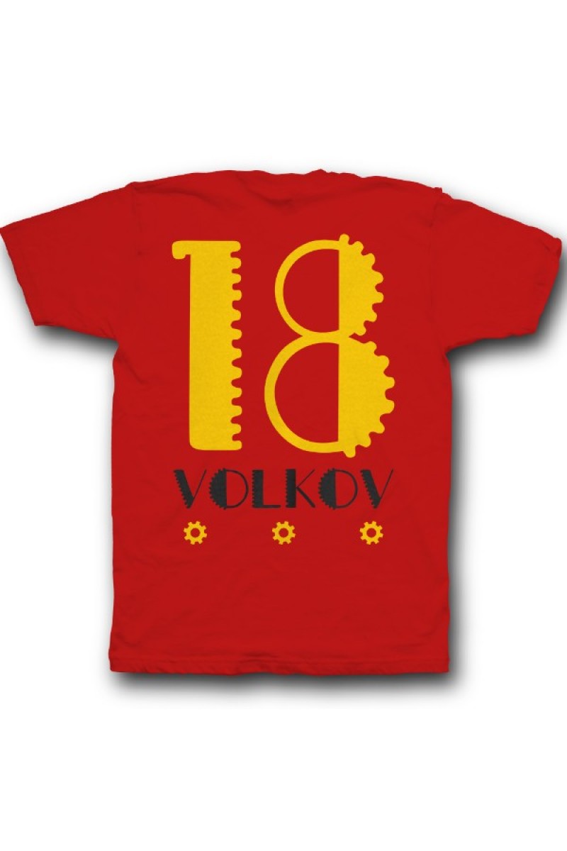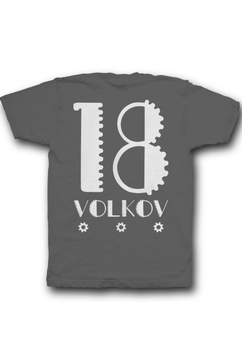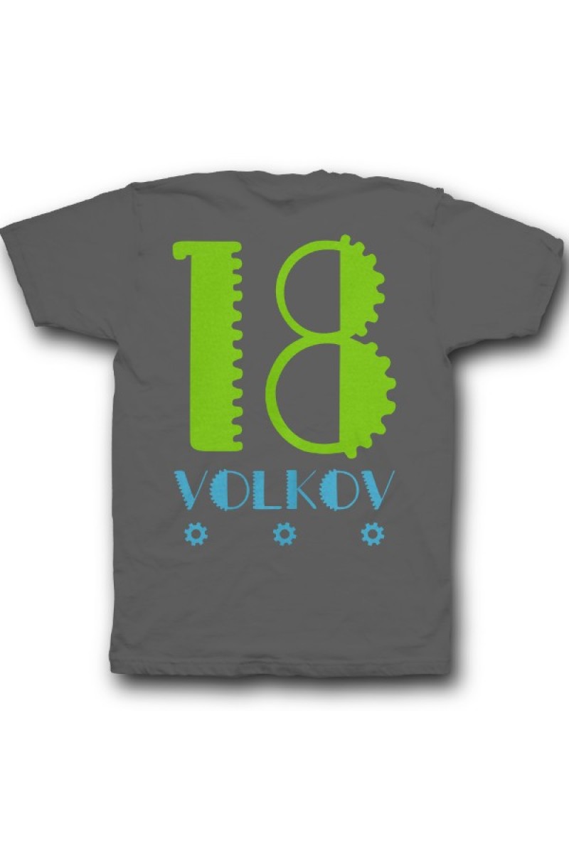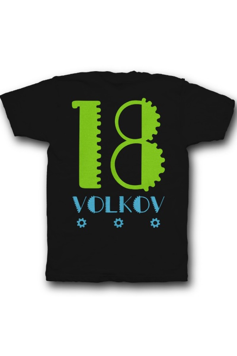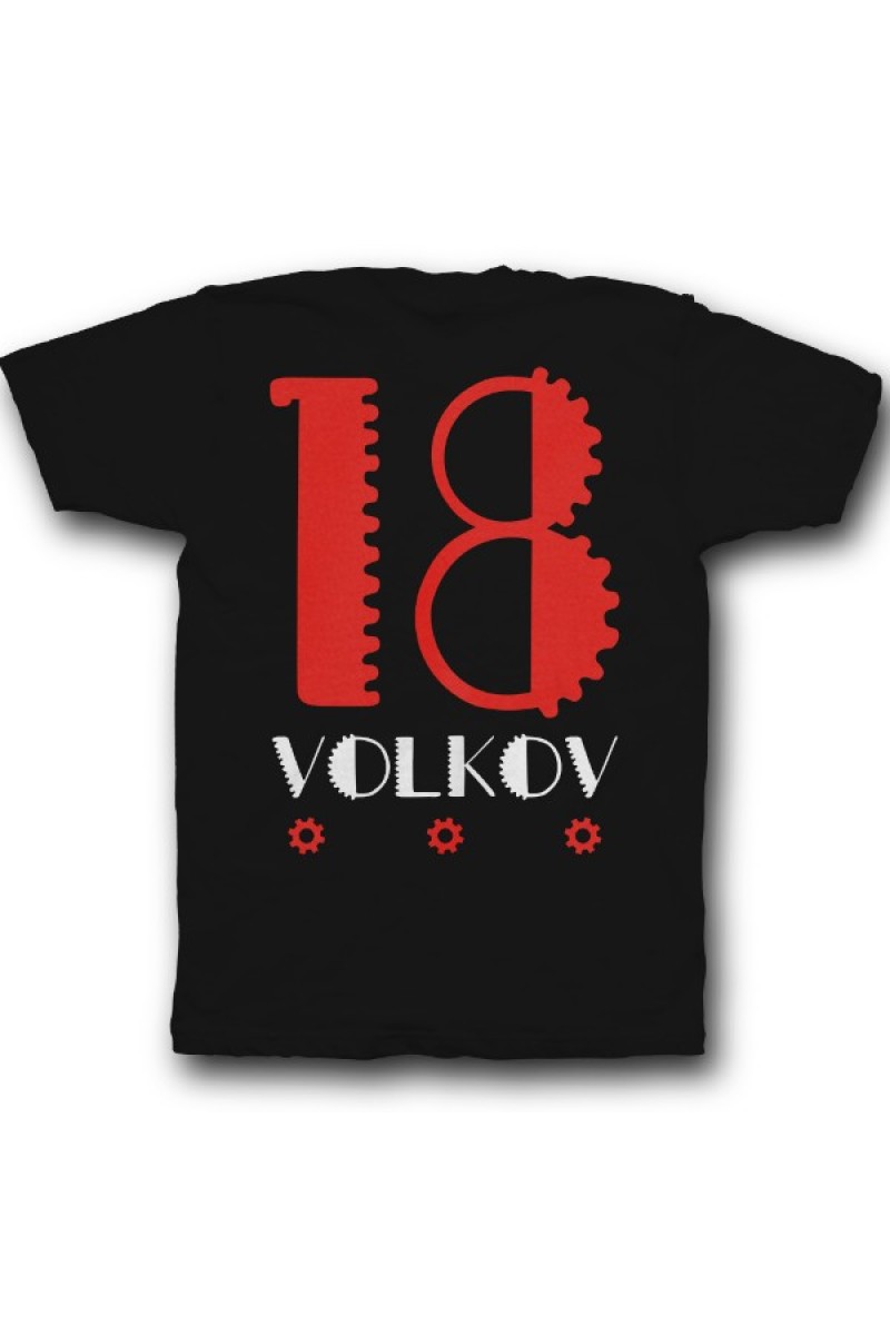 Прикольная именная футболка с механическим шрифтом. Помимо надписи на футболке есть изображение шестеренок.