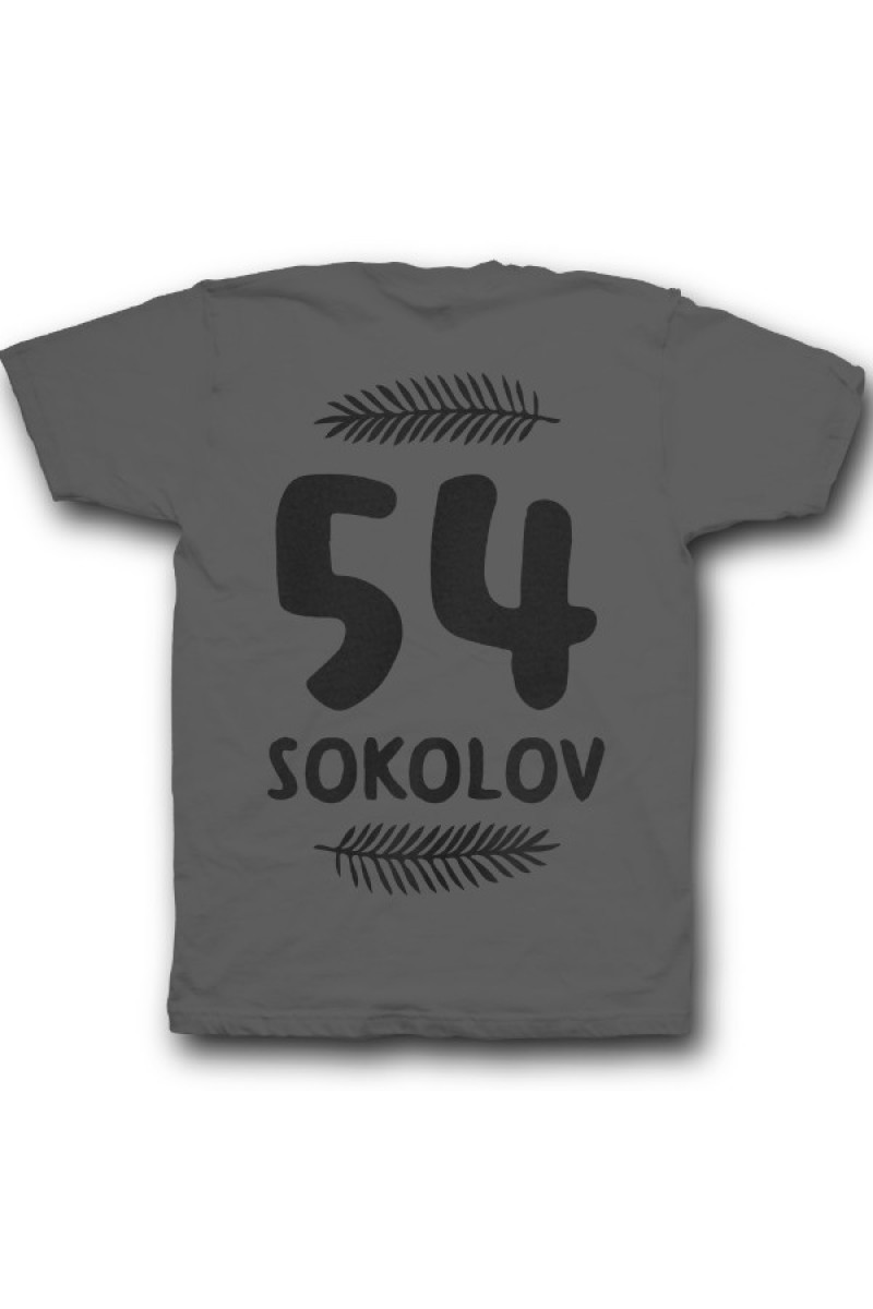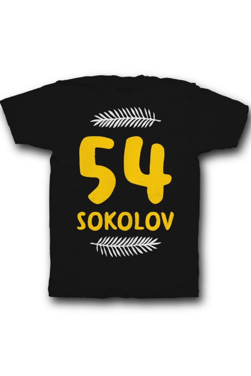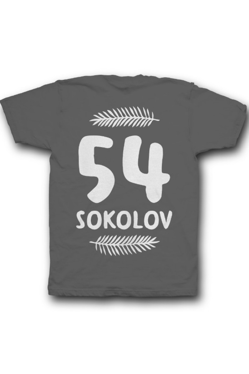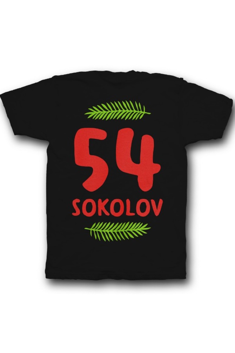 Прикольная именная футболка с прикольным шрифтом. Помимо надписи на футболке есть изображение листьев.