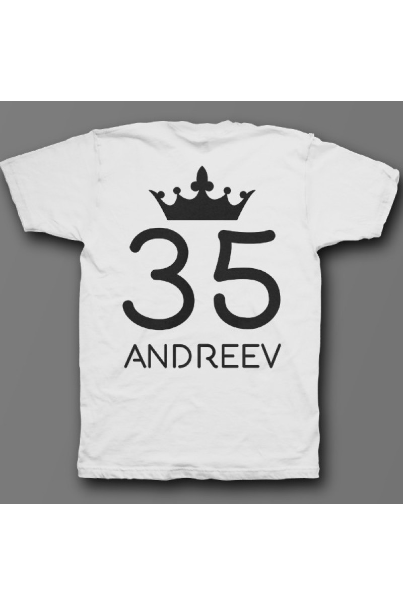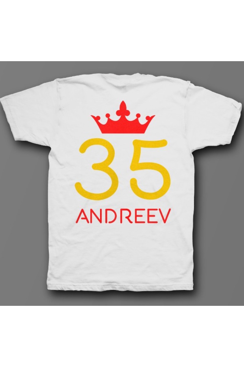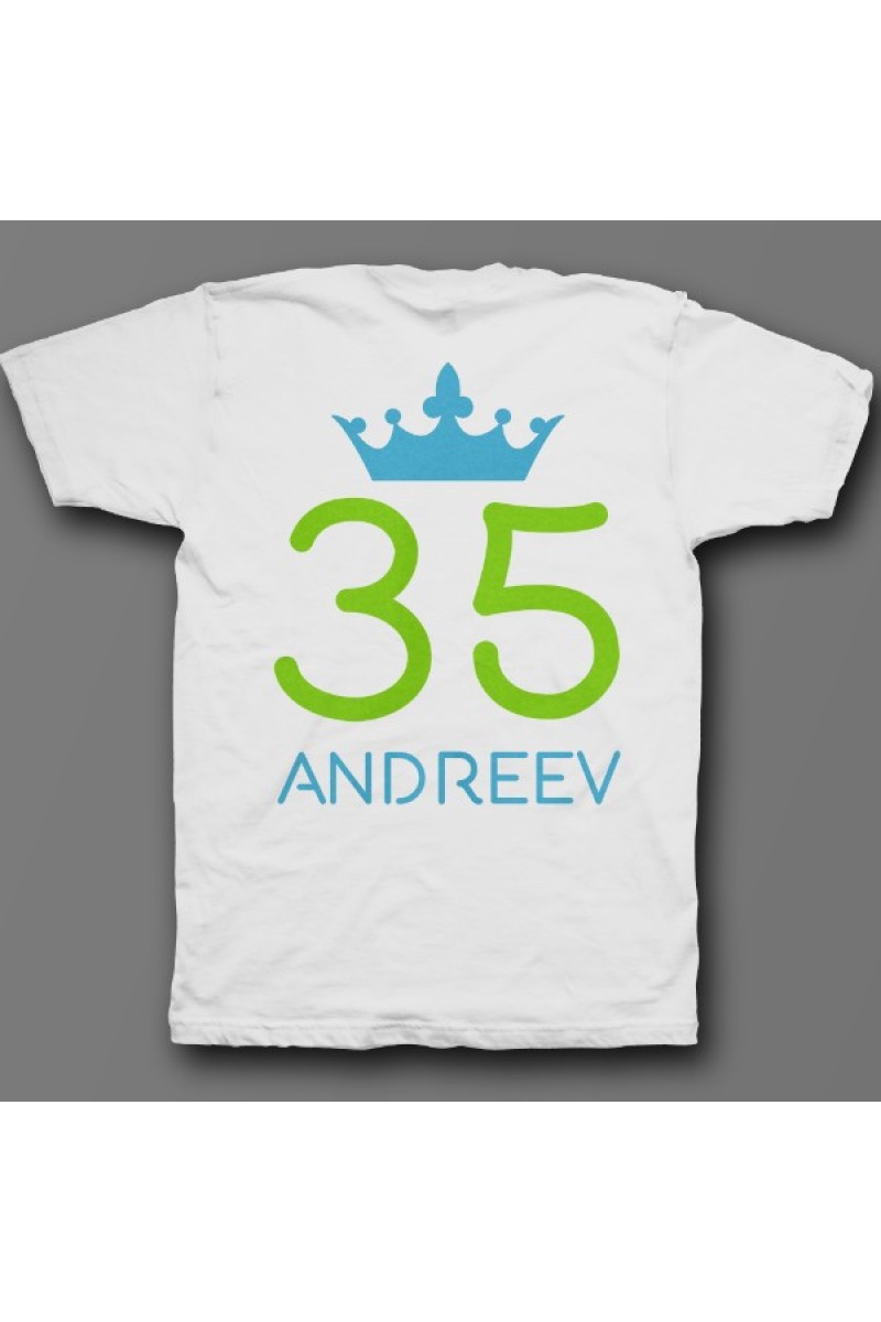 Веселая именная футболка с рукописным шрифтом. Помимо надписи на футболке есть изображение короны.