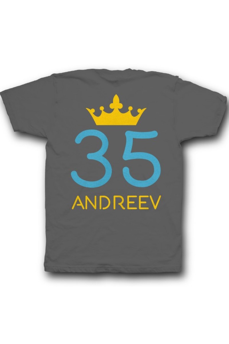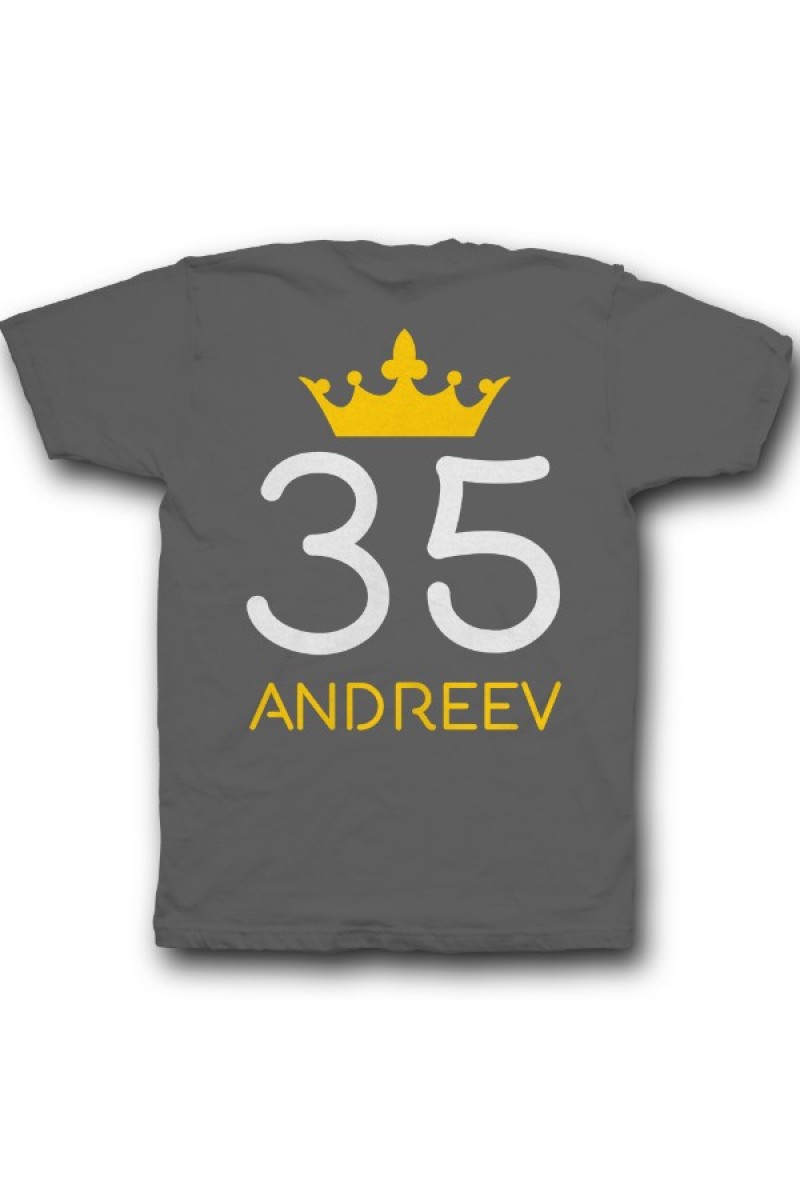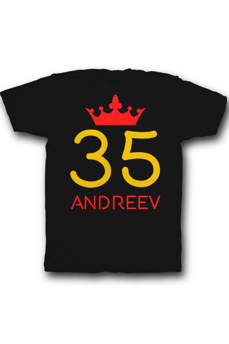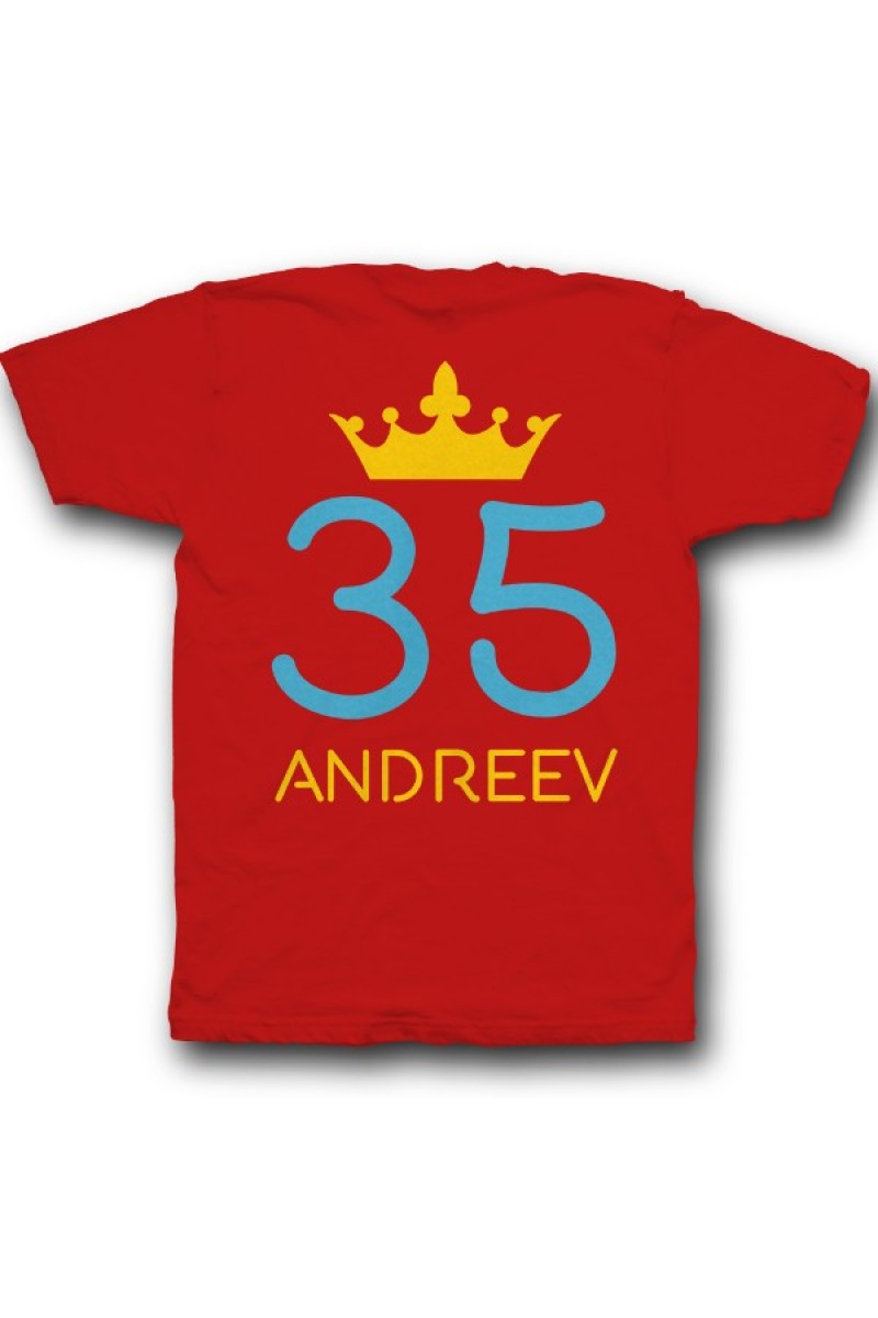 Веселая именная футболка с рукописным шрифтом. Помимо надписи на футболке есть изображение короны.