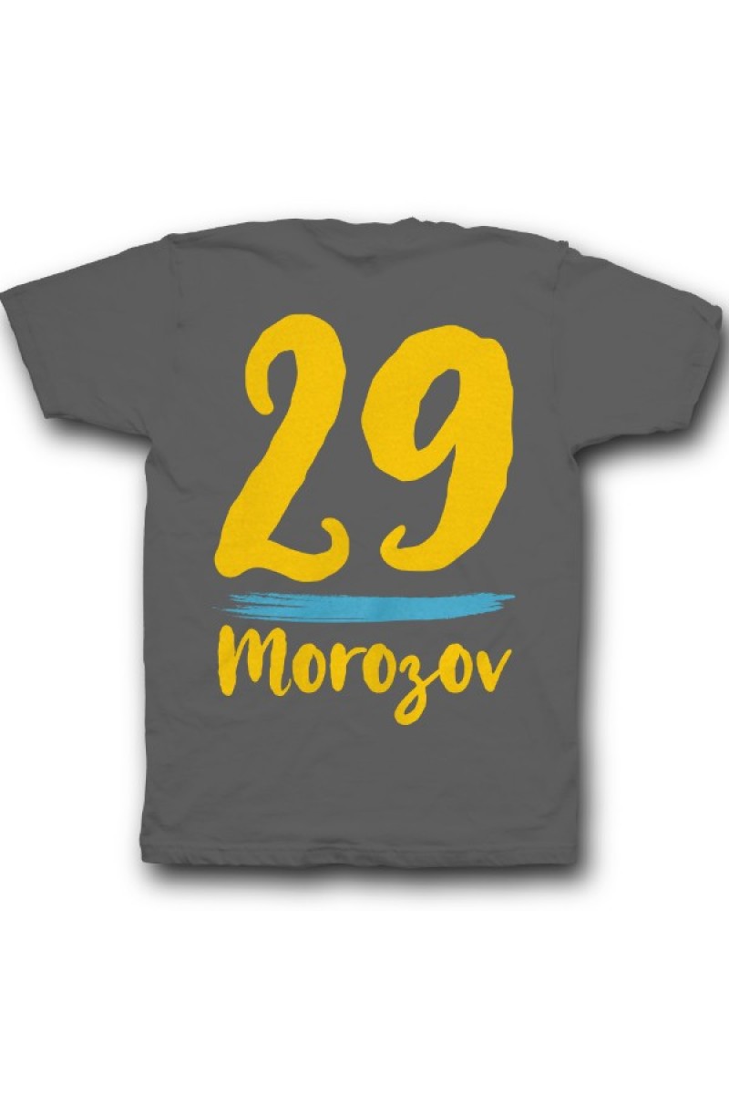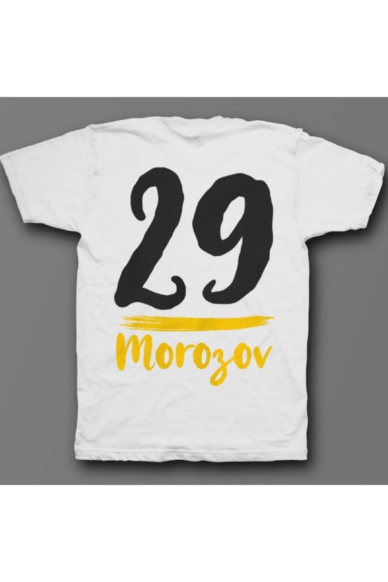 Прикольная именная футболка с рукописным шрифтом. Помимо надписи на футболке есть изображение мазка кисти.
