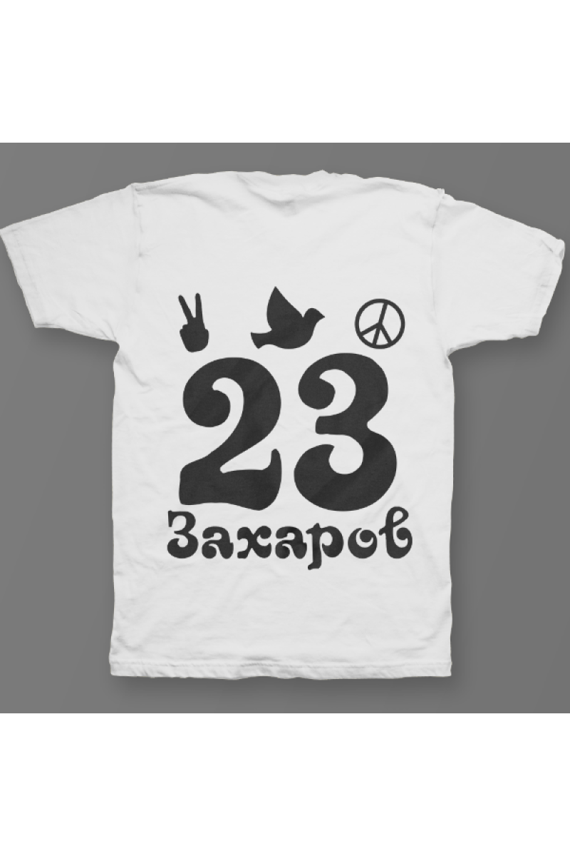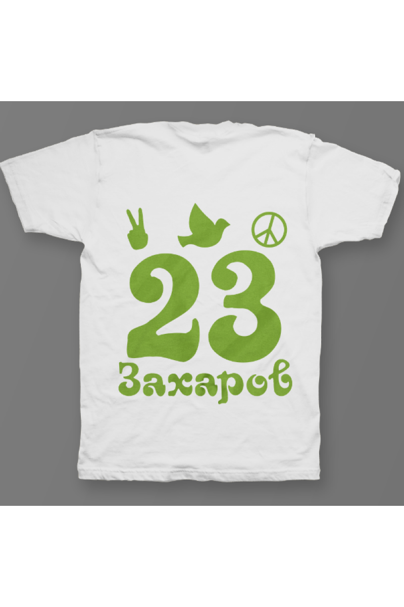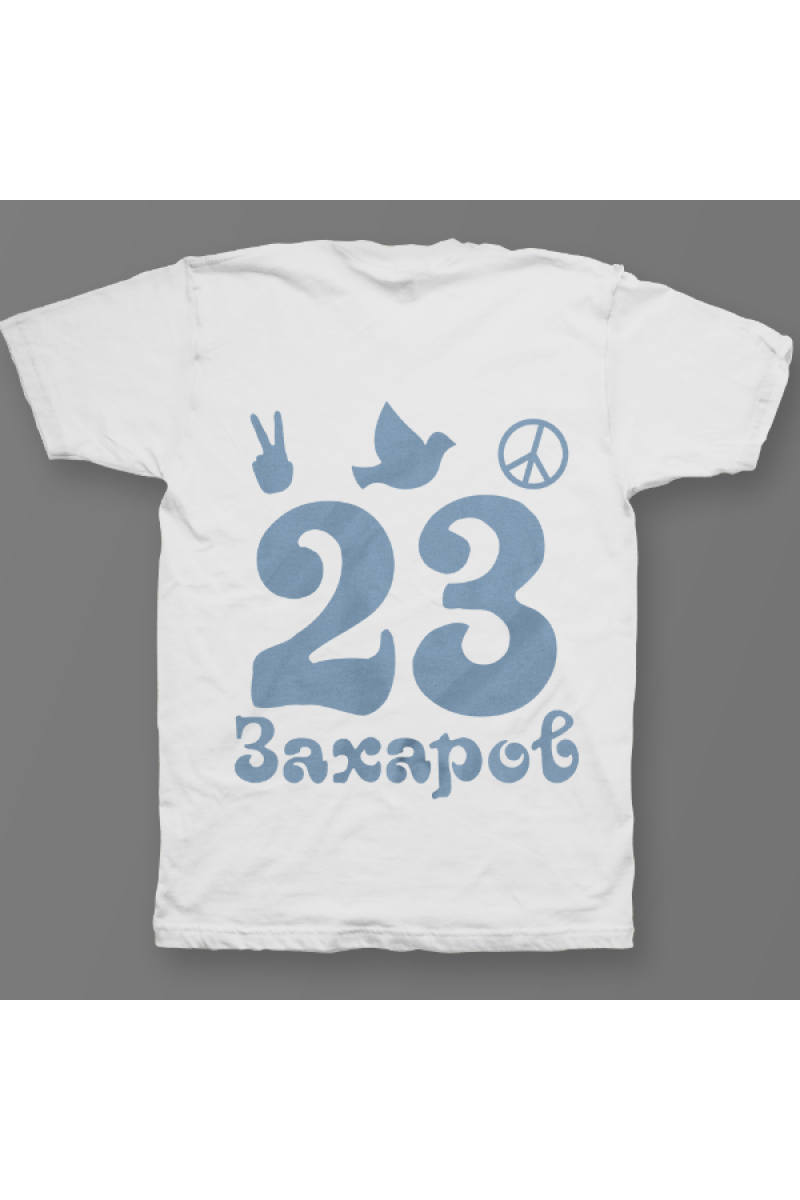 Именная футболка с хиппи шрифтом. Помимо надписи на футболке есть изображения знаков свободы.