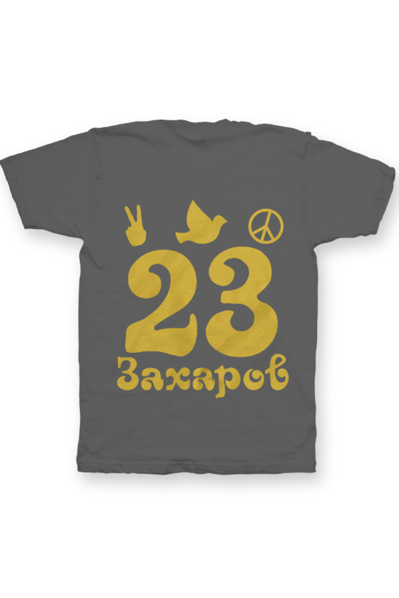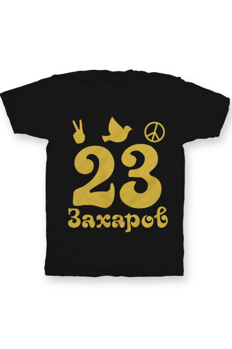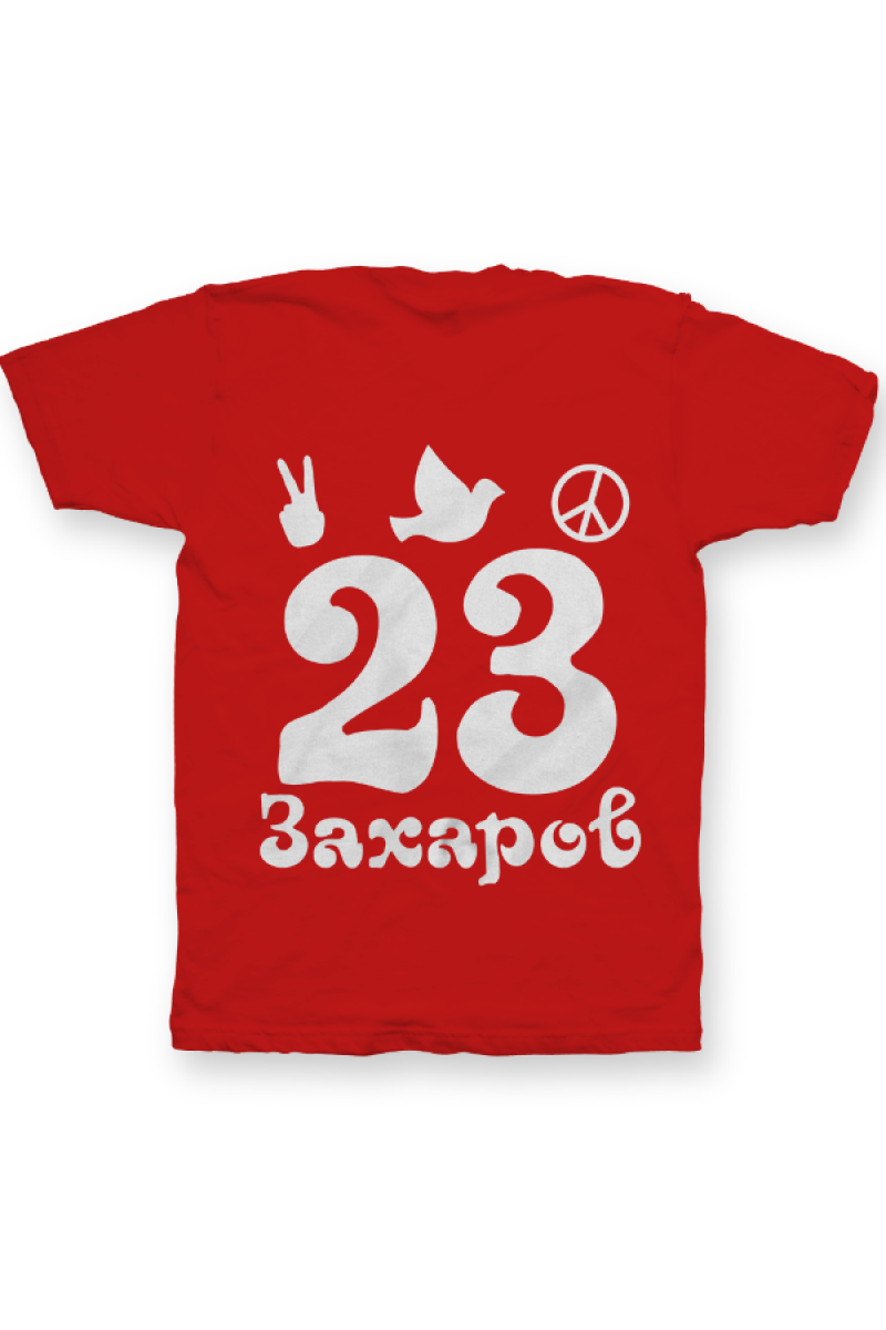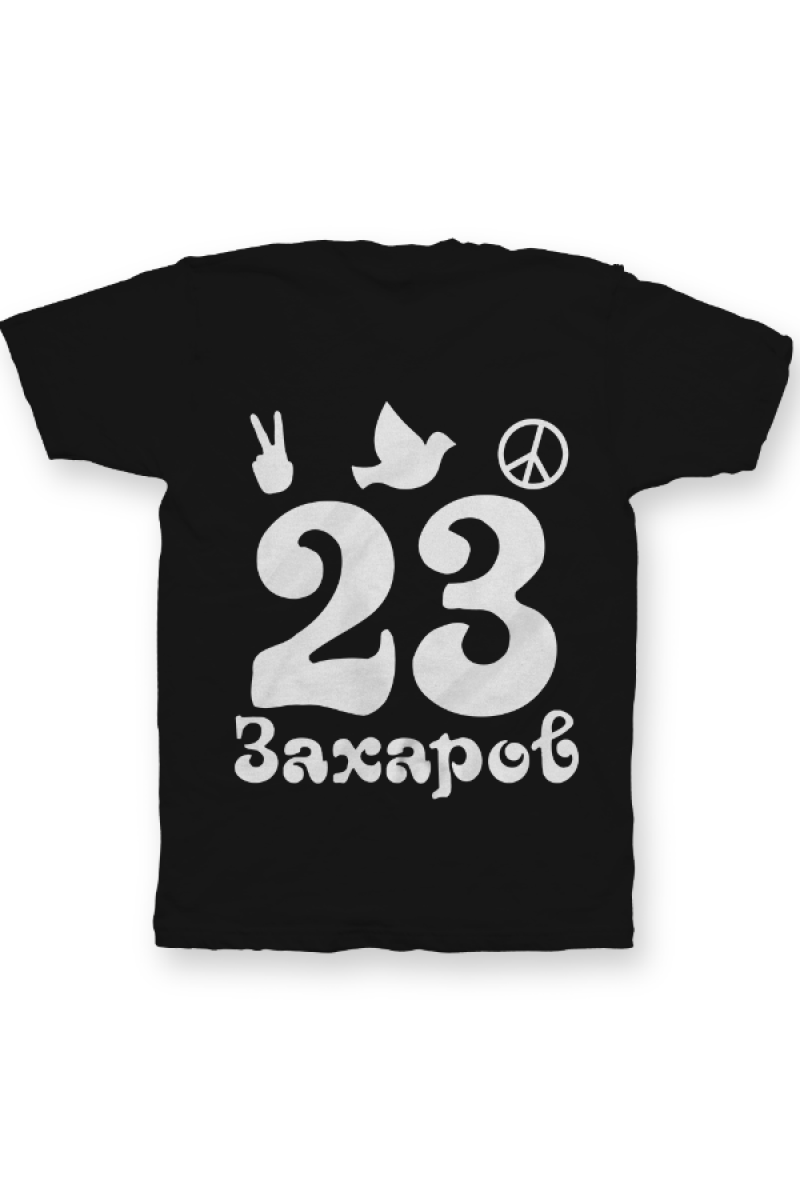 Именная футболка с хиппи шрифтом. Помимо надписи на футболке есть изображения знаков свободы.
