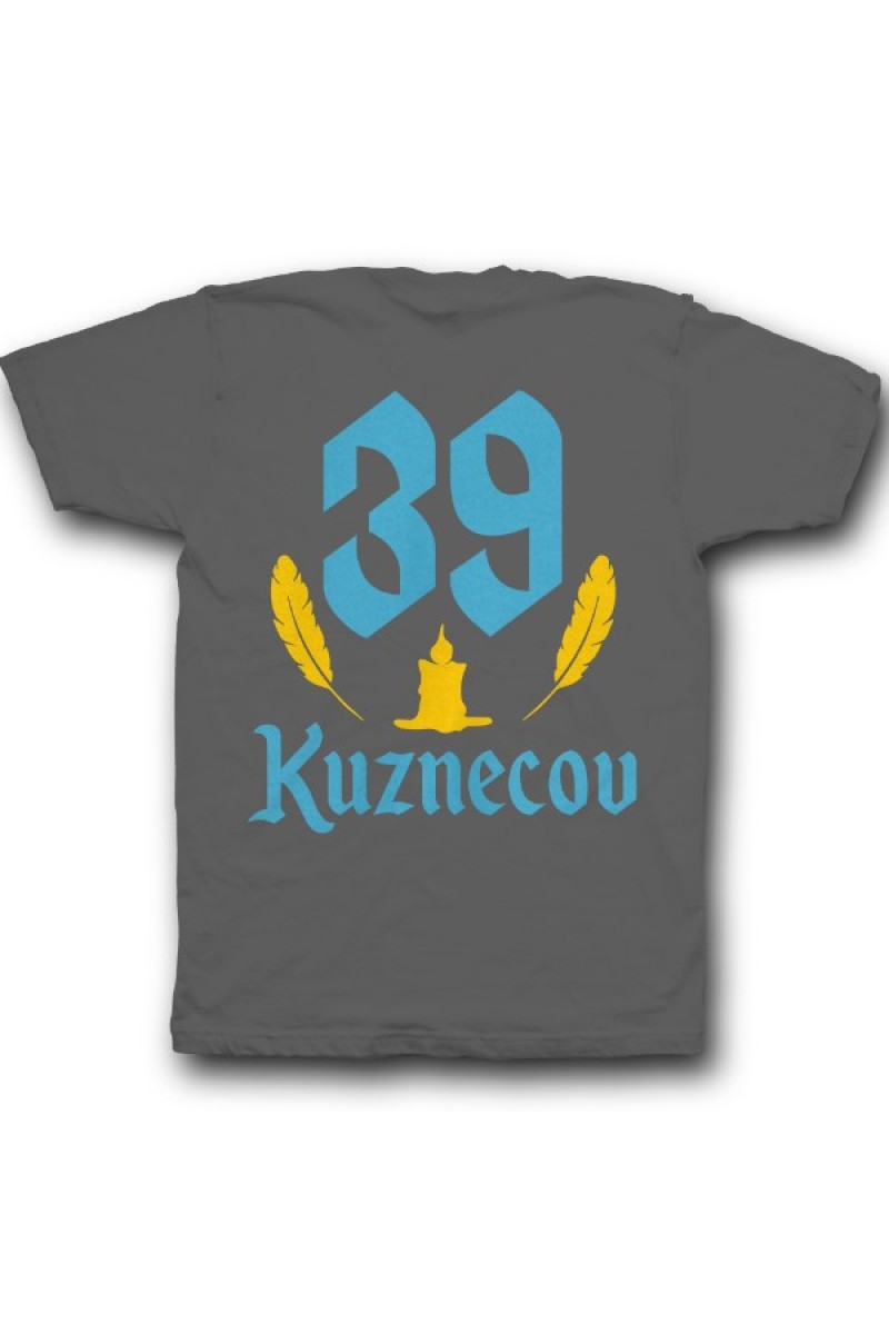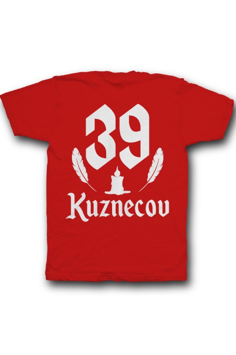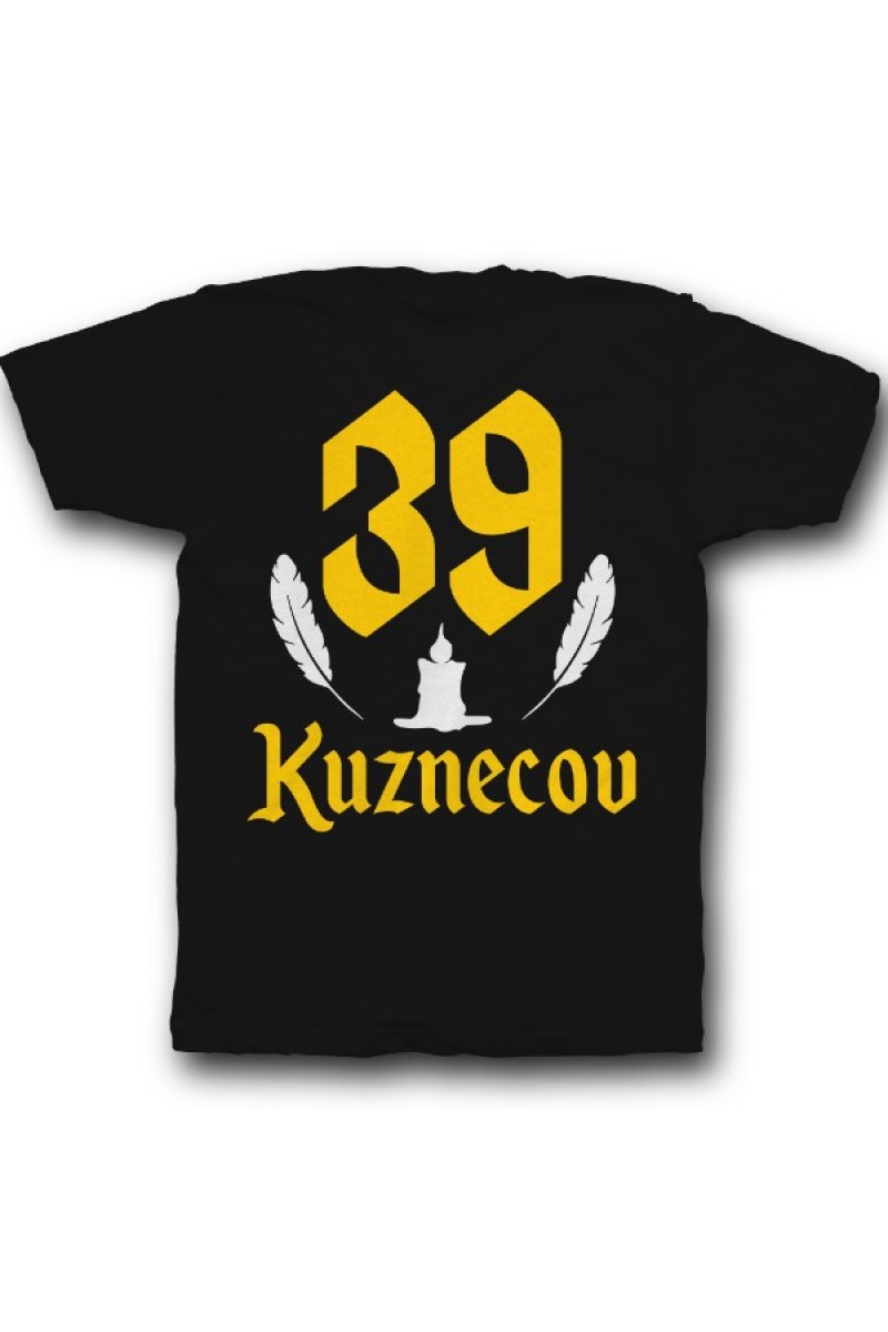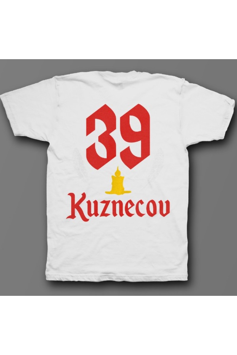 Прикольная именная футболка с шрифтом старого времени. Помимо надписи на футболке есть изображение свечки и письменных перьев.