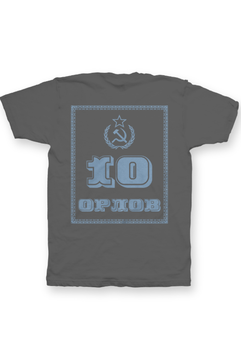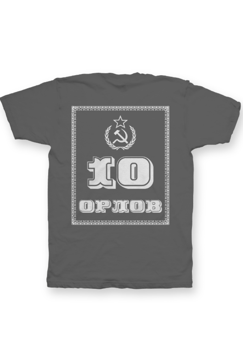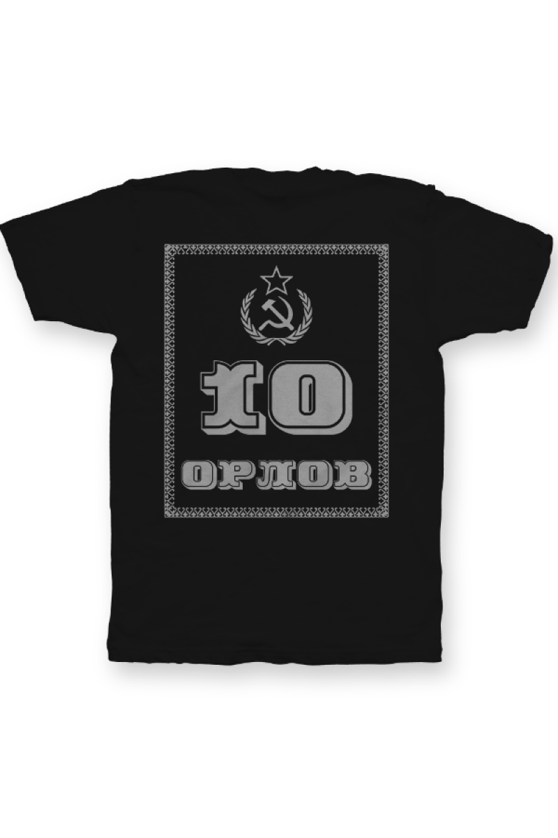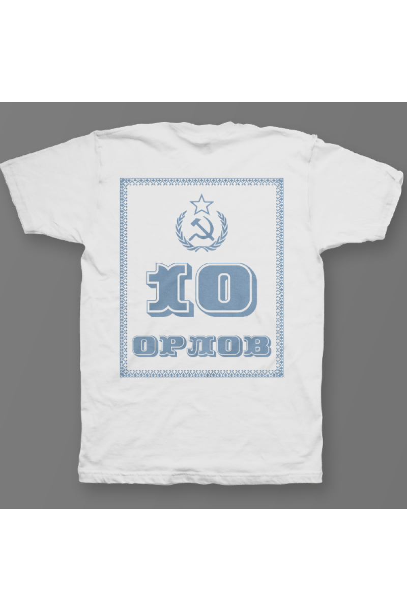 Именная футболка с революционным шрифтом. Помимо надписи на футболке есть изображение серпа и молота.