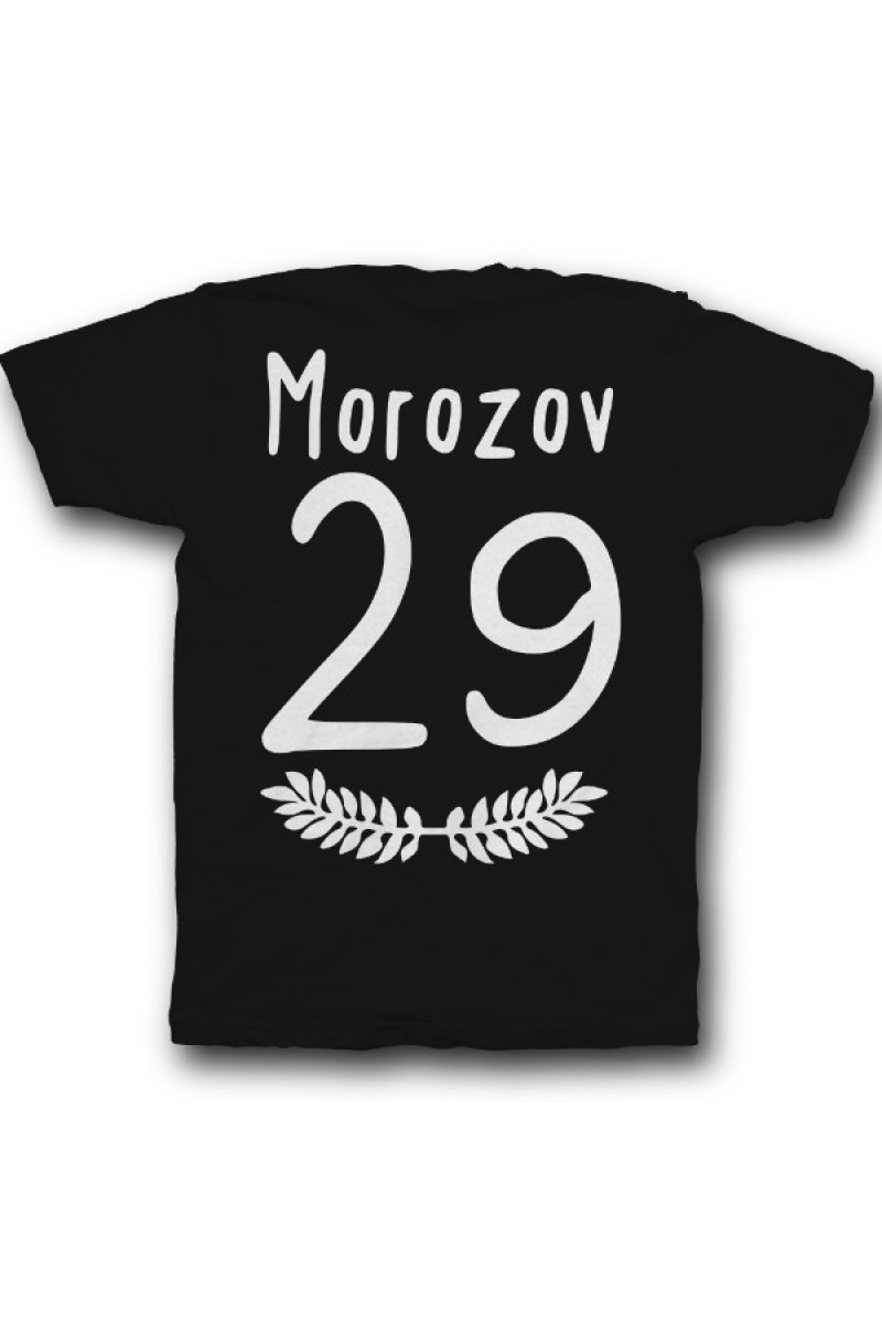 Прикольная именная футболка с тонким шрифтом. Помимо надписи на футболке есть изображение веточек с листьями.