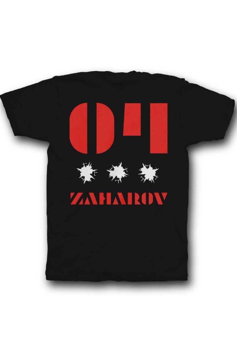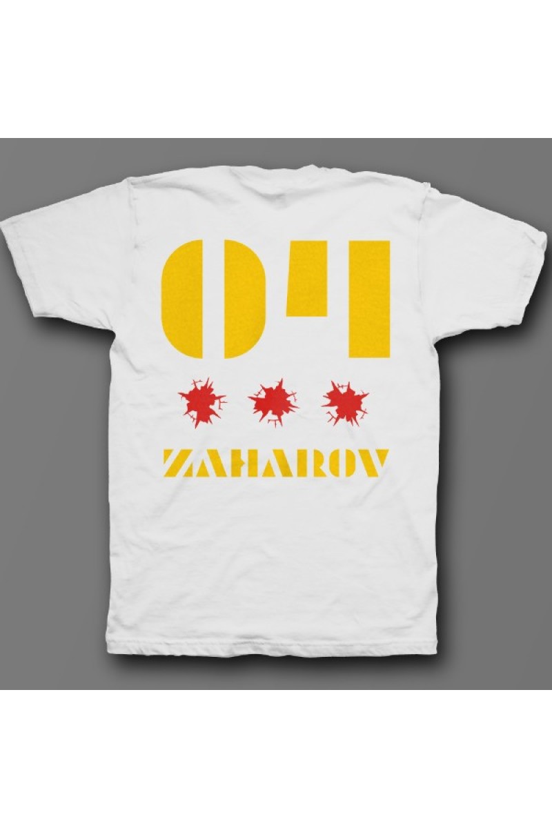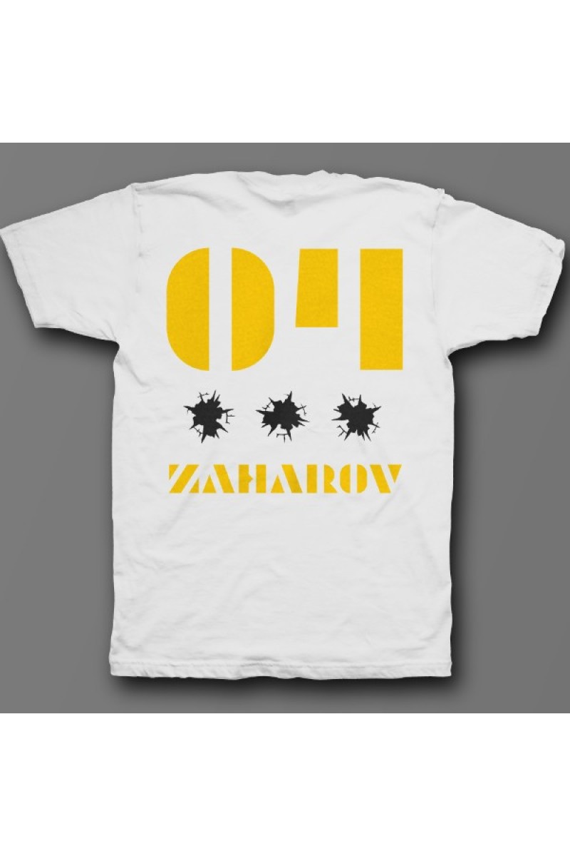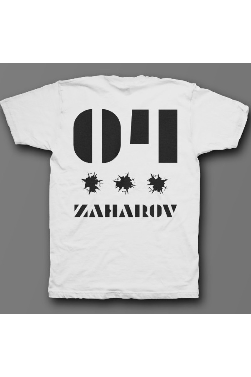 Веселая именная футболка с трафаретным шрифтом. Помимо надписи на футболке есть изображение дырок от пуль.