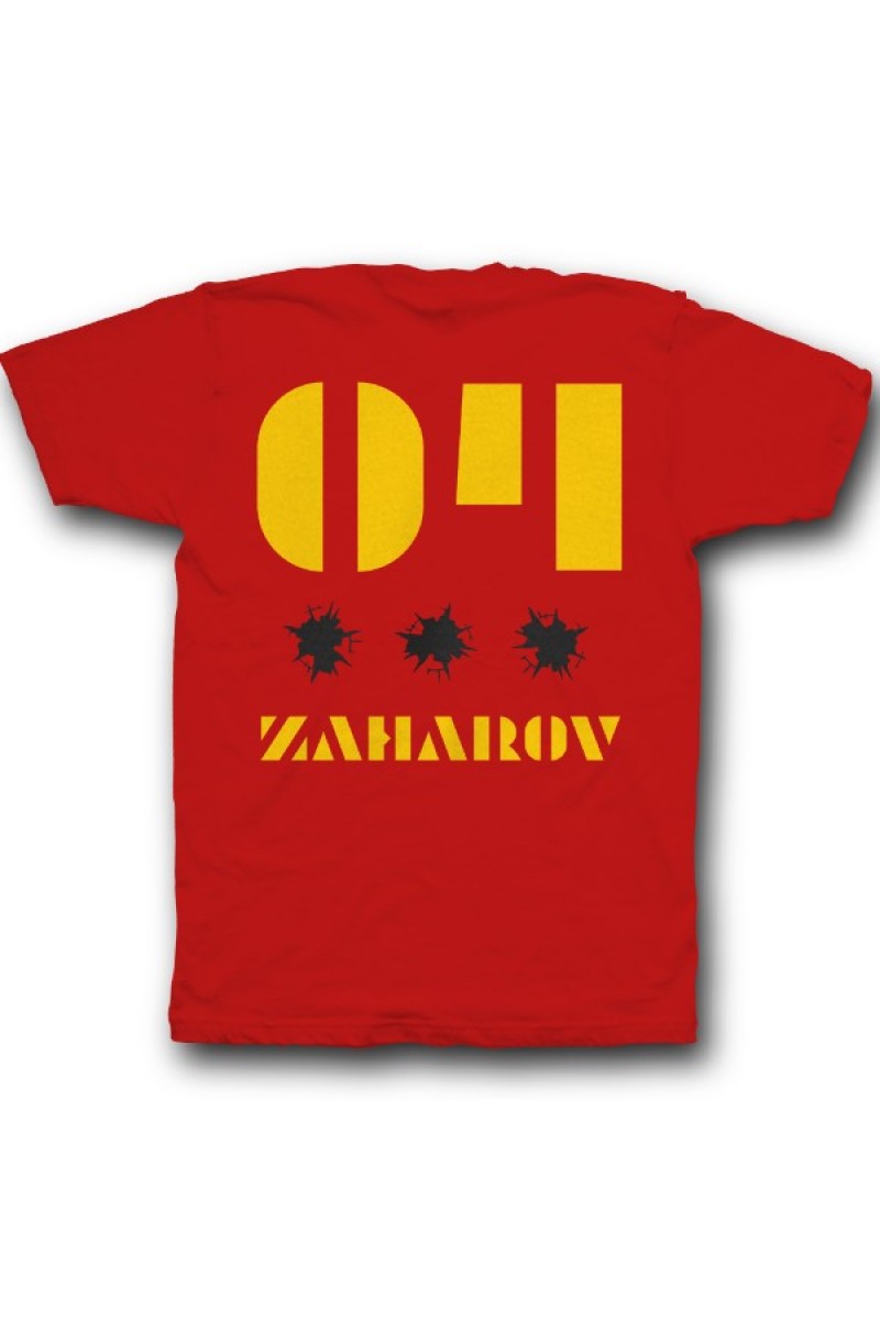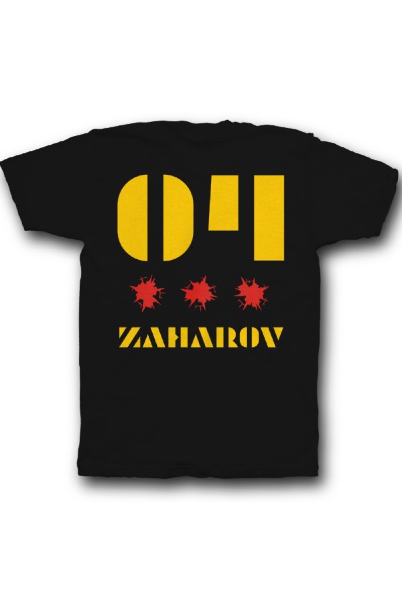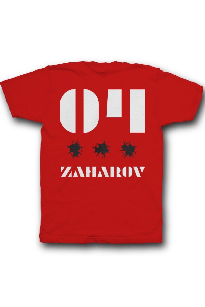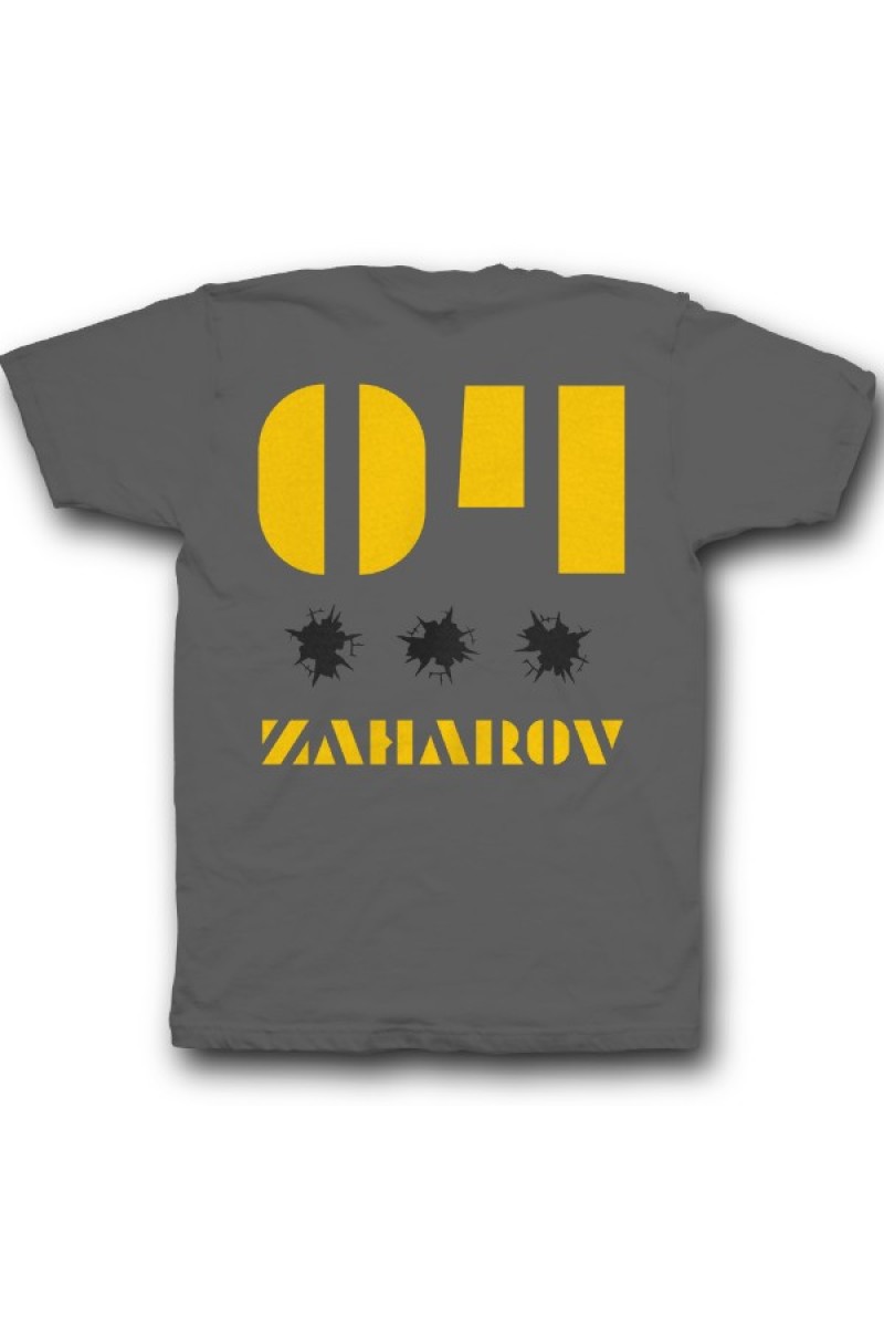 Веселая именная футболка с трафаретным шрифтом. Помимо надписи на футболке есть изображение дырок от пуль.