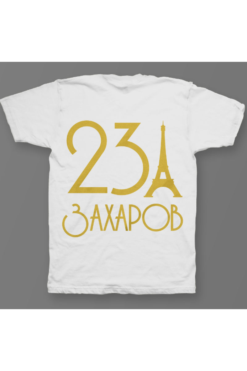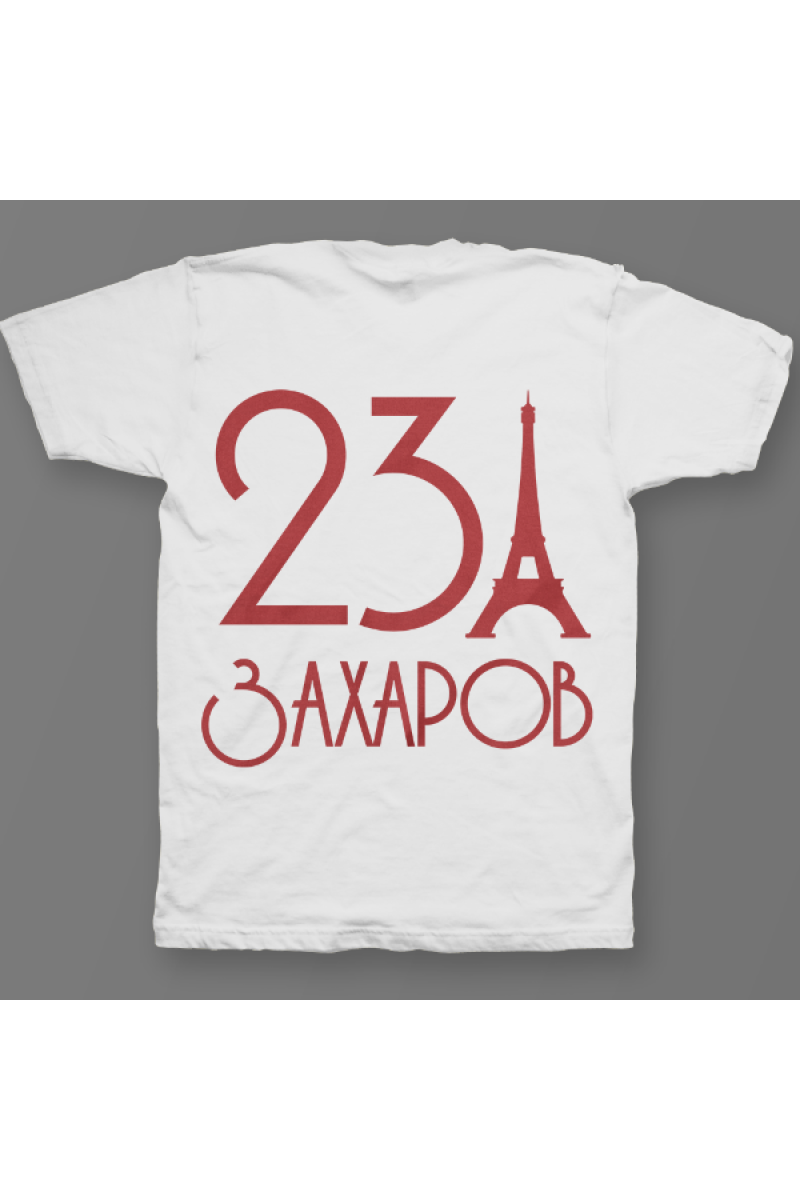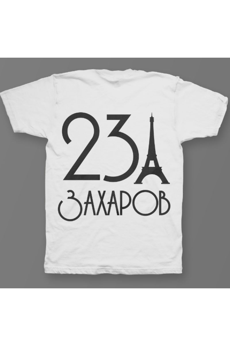 Именная футболка с аккуратным шрифтом. Помимо надписи на футболке есть изображение эйфелевой башни.