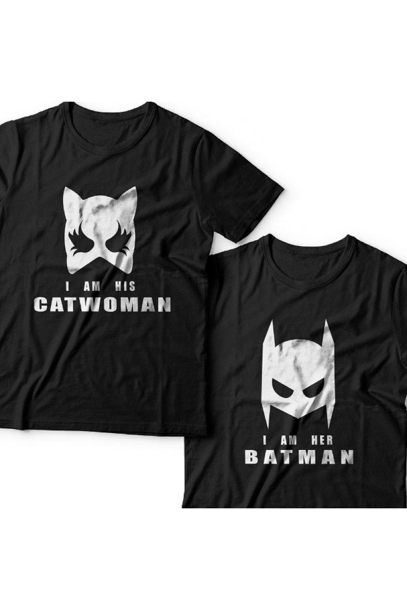 Парная футболка с принтом "I am his Catwoman (Я его женщина-кошка)"/"I am her Batman (Я ее бэтмен)"