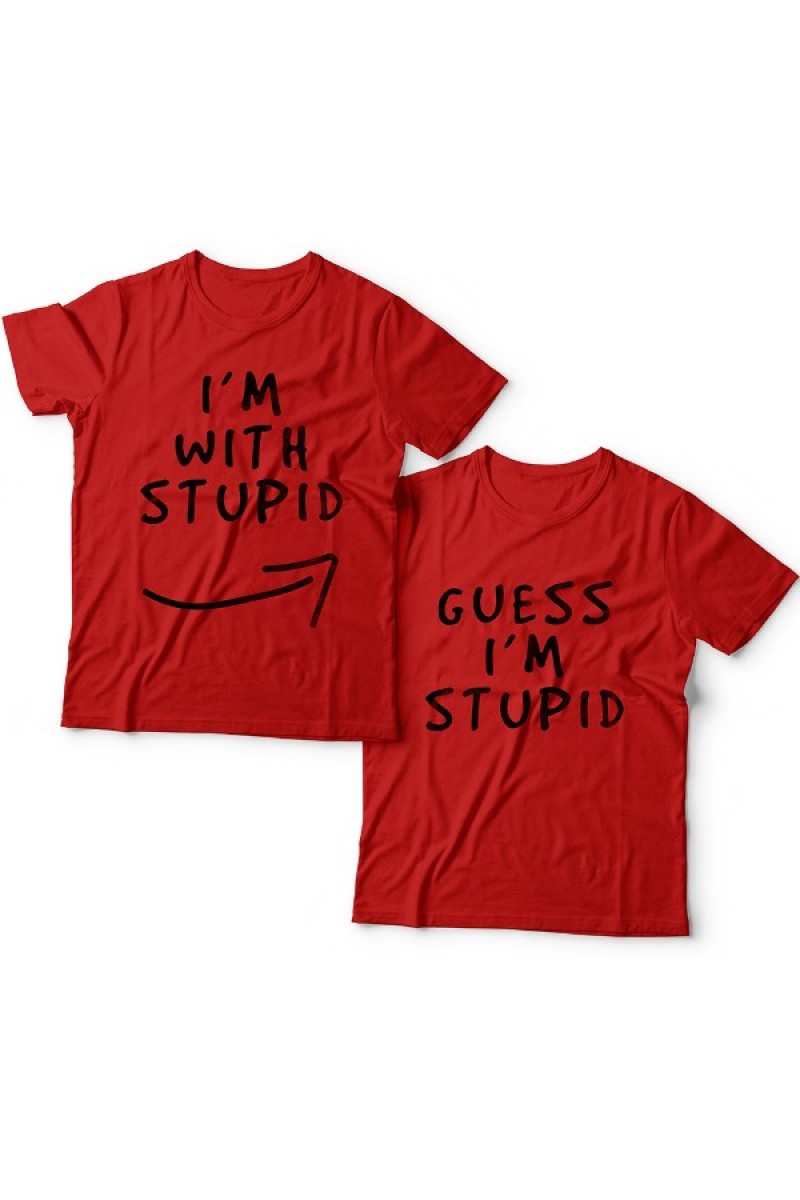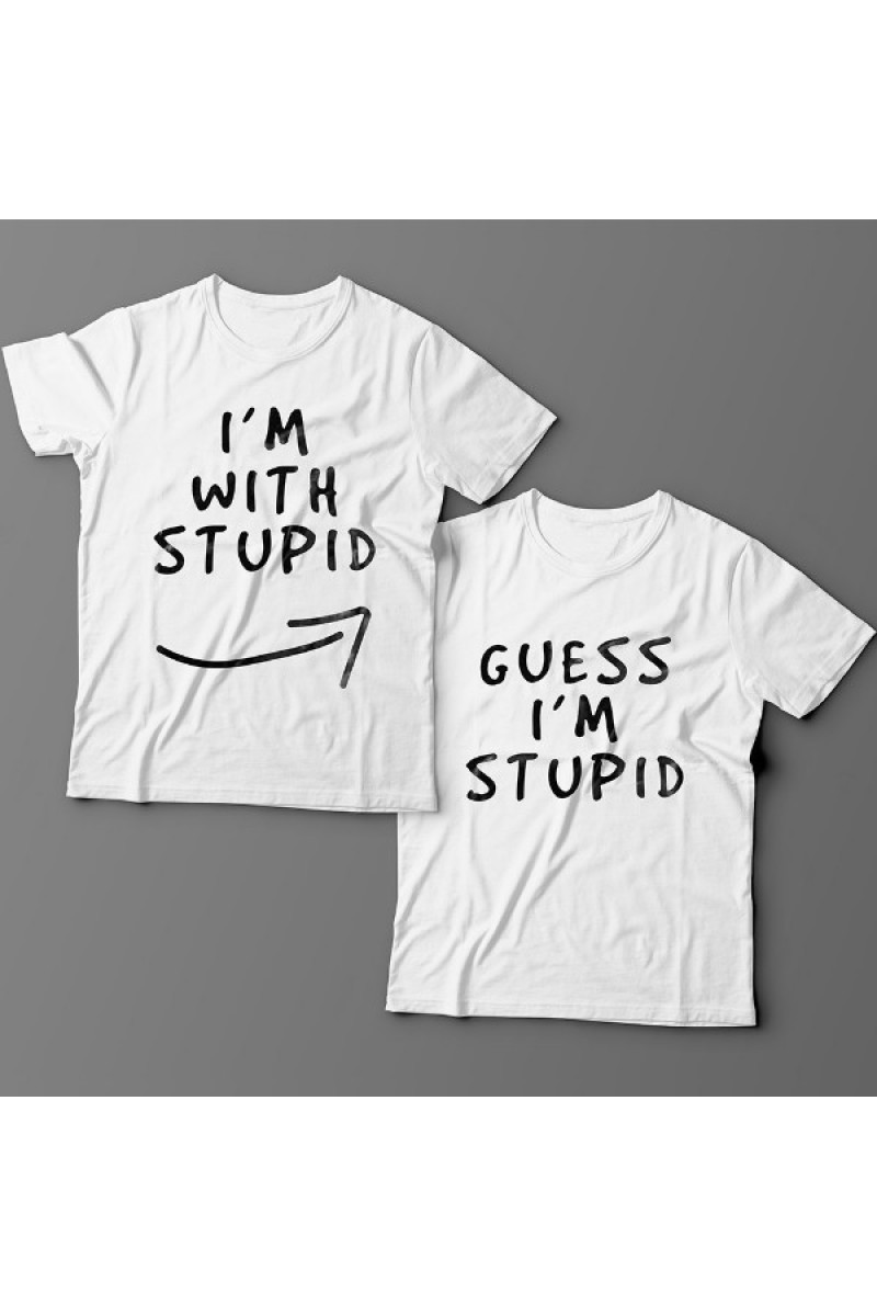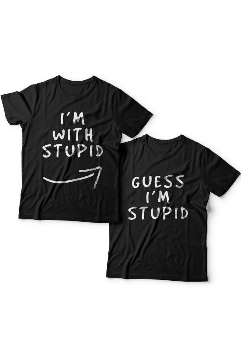 Парные футболки для влюбленных с надписями "I'm with stupid" - я с тупым(-ой) и "Guess i'm stupid" - Наверное, я глупый(-ая).