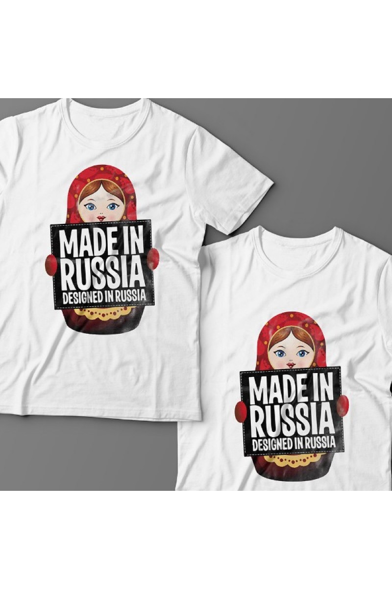 Парные футболки с изображением матрешки "Made in Russia (Сделано в России)"