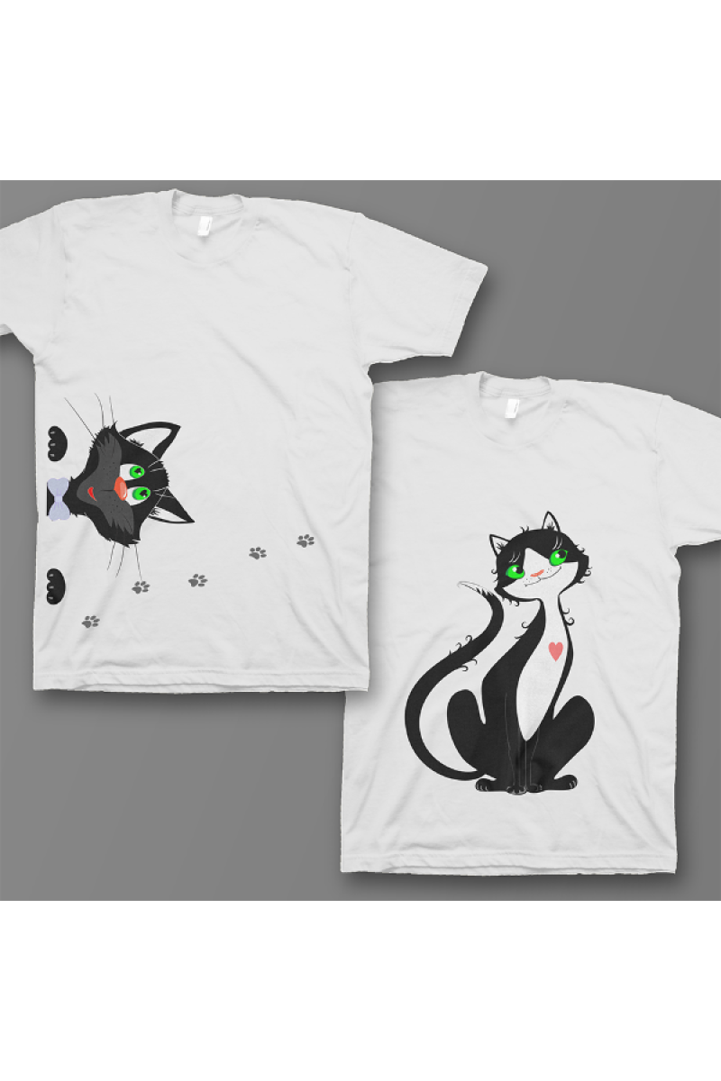 Парные футболки для влюбленных с красивой кошечкой - для нее и подглядывающим котиком- для него.