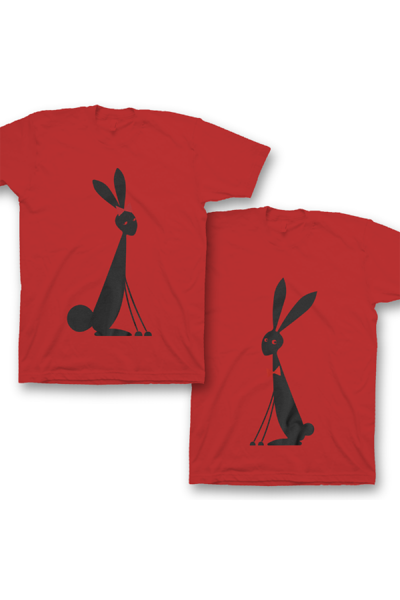 Парные футболки для влюбленных с принтами на которых изображены забавные кролики.