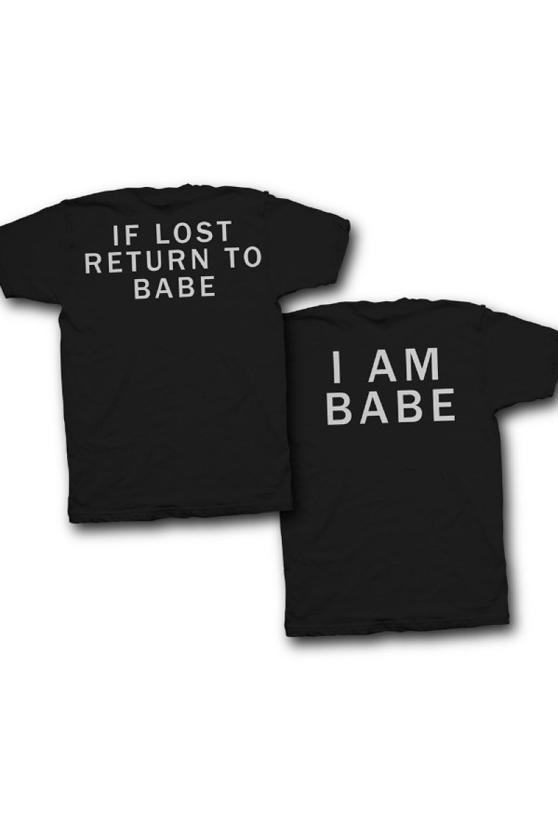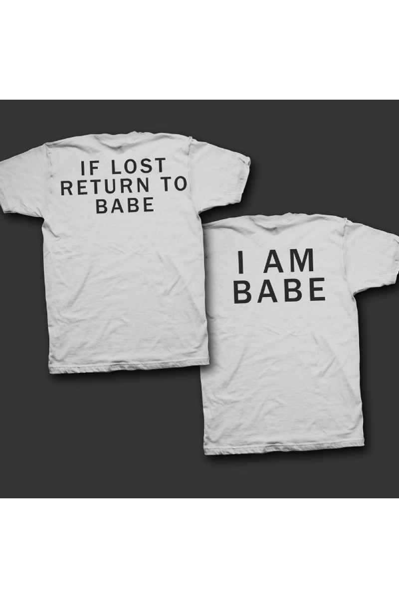 Парная футболка с надписями на спине "If lost return to babe" и "I am babe"