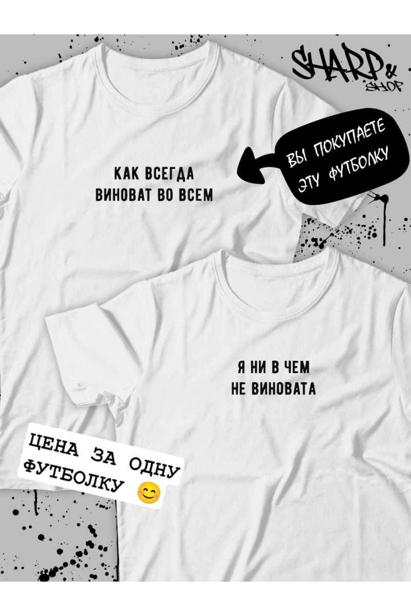 ВНИМАНИЕ! Вы заказываете ОДНУ футболку (на картинке она помечана ярлычком). Пару к ней ищите в карусели). В этой карточке товара есть футболки (свитшоты, худи) Арбузер&Встречаюсь с арбузером, Биба&Боба, Душнила&Душнила поменьше, Ее котик&Его киса, Виноват&Не виновата, Люблю свою жену&Люблю своего мужа, Сладенькое&Люблю сладенькое, Терпение&Вынос мозга. Парные футболки для влюбленных, для подруг – отличный подарок на все времена и любой праздник: на день влюбленных 14 февраля, день рождения, годовщину. Парные вещи для влюбленных для парня и девушки – прекрасный вариант для модного парного лука, парные майки для пар могут быть как приколы для друзей. Черная белая футболки оверсайз с прикольным принтом и смешными надписями не только разнообразят ваш гардероб, но и привлекут внимание к вашей паре на улице. Парные вещи для подруг, пар всегда порадуют вас как подарок для парня, девушки. Парная одежда для семьи, товары для влюбленных подойдут для лп, мужа и жены как комфортная домашняя одежда и как парные костюмы для парня и девушки на свидание, для прогулки, похода в кино, кафе и фотосессии. Парные футболки для парня и девушки подойдут под спортивный и повседневный стиль. Если не знаете, что подарить на день Святого Валентина подарки какие выбрать для друзей, лучшей подруги, парня, девушки, жены, папы, мамы, сестры, брата, то футболки парные для влюбленных с принтом – лучший вариант. Футболка женская мужская с принтом как парный подарок для пары, парный подарок для влюбленных. Футболка oversize есть больших размеров 3xl. Если любите oversize, рекомендуем заказать на 1-2 размера больше. Тогда молодежная одежда для женщин и мужчин, подростков будет смотреться стильно и не будет сковывать движений. Отличный выбор как спортивная футболка на лето для школы. Футболка унисекс сделана из мягкой ткани хлопок 100%, имеет прочные ровные швы. Парные вещи для влюбленных высокого качества, не портятся после стирки. Стирать при температуре не выше 30°, вывернув наизнанку, отжимать при малом количестве оборотов, машинная сушка запрещена. При соблюдении рекомендаций футболка с надписью будет продолжать радовать вас, яркий принт не будет трескаться и тускнеть. Наш бренд Sharp& и Sharp&Shop следит за модными трендами. Чтобы увидеть больше товаров с прикольными принтами, рисунками, надписями и мемами, переходите в каталог бренда в Wildberries :)