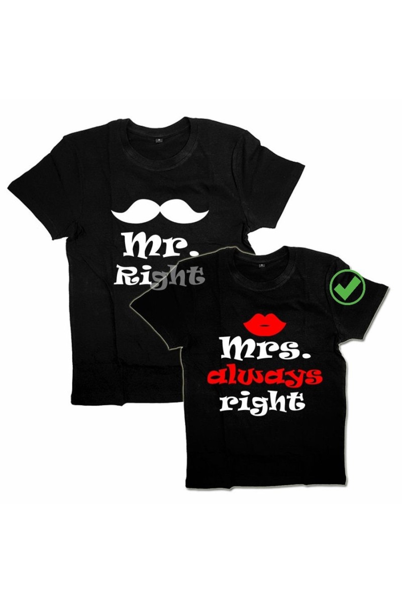 Цена указана за одно изделие (на фото отмечено зелёной галочкой). Для выбора второго парного изделия необходимо выбрать следующее изделие в блоке вариантов.Парная футболка для двоих с принтом "Mr. Right & Mrs. Always Right".Прикольные парные футболки подходят для влюбленных, для мужа и жены, для молодоженов, для парня и девушки, для друзей.Family look - модный тренд, парная одежда что объединяет и выделяет семью.Прикольные надписи, парные рисунки и принты с картинками на футболках подходят как подарок на день рождения, на 14 февраля, на годовщину.Оригинальные футболки для пар с принтами состоят из 100% хлопка.Футболки унисекс - фасон подходит как для мужчин, так и для женщин. По умолчанию в карточке товара указан выбор мужских размеров. Женские размеры - на 1 размер меньше.Футболки должны смотреться свободно, поэтому не следует выбирать слишком маленький размер, а лучше выбрать размер с запасом.