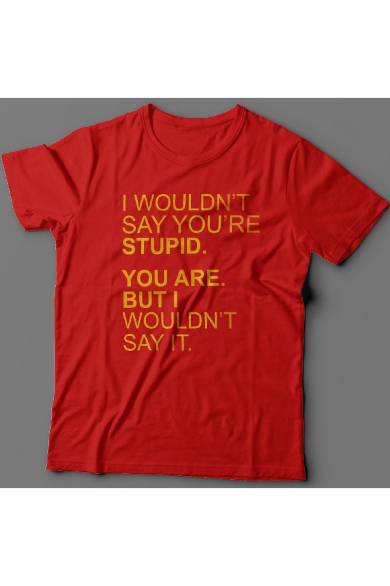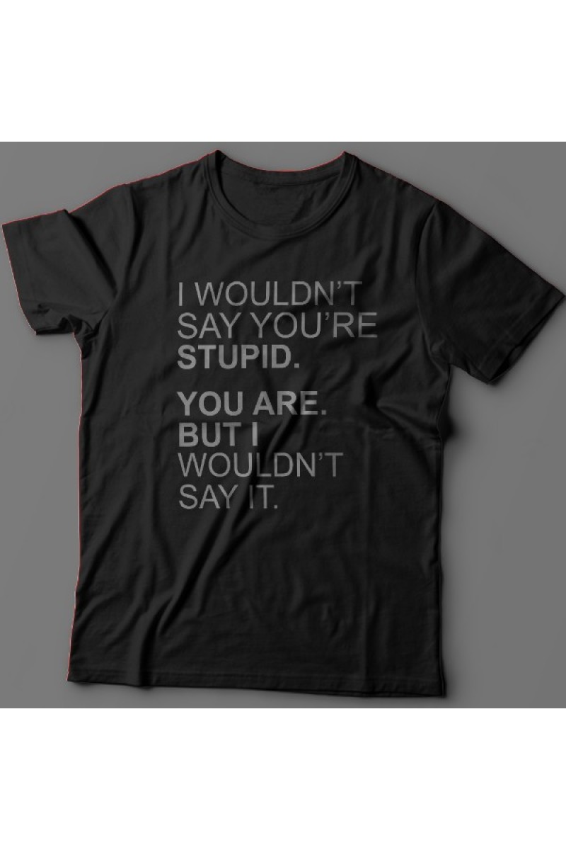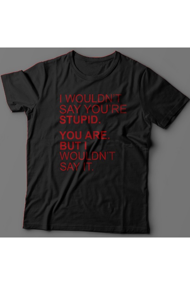 Смешная футболка с надписью "I wouldn't say you're stupid. You are. But i wouldn't say it." - Я бы не сказал что ты тупой. Ты тупой. Но я этого не сказал.