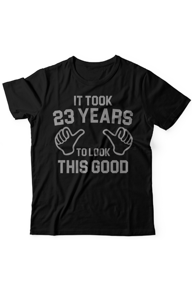 Прикольная футболка с принтом "It took 23 years to look this good" - "Мне понадобилось 23 года чтобы выглядеть так хорошо".