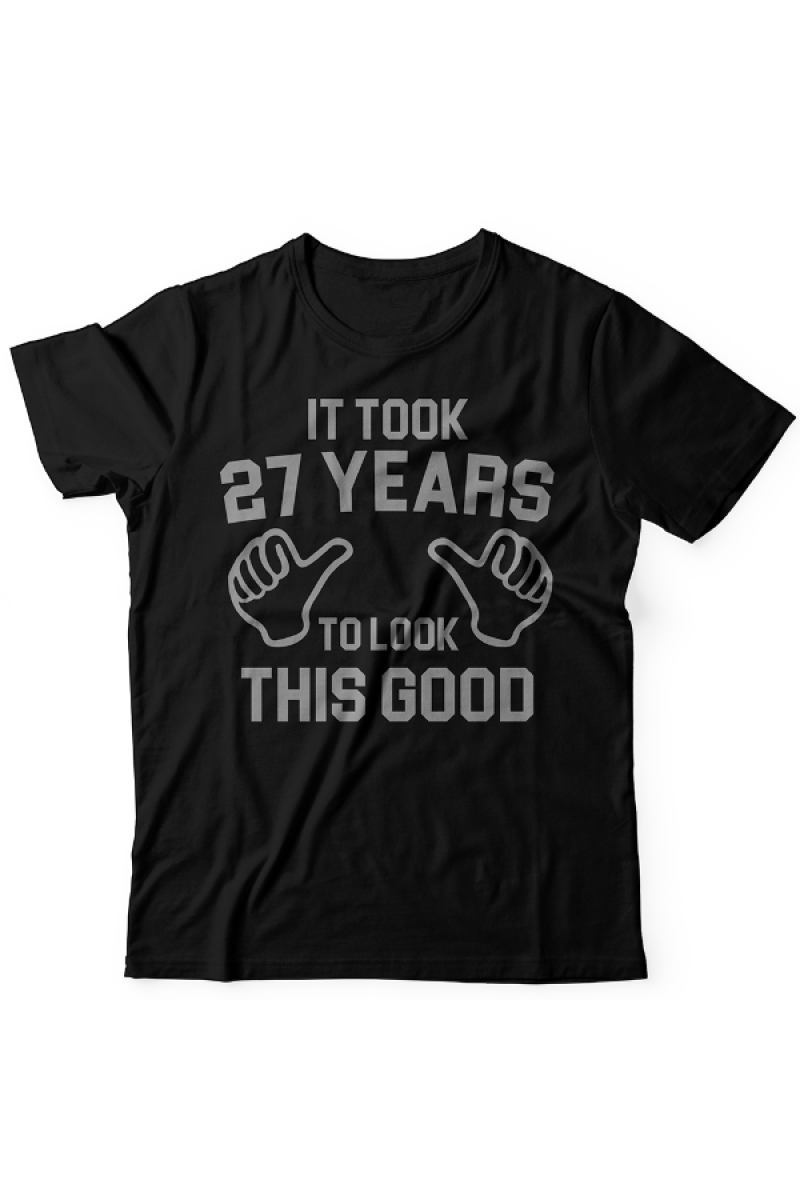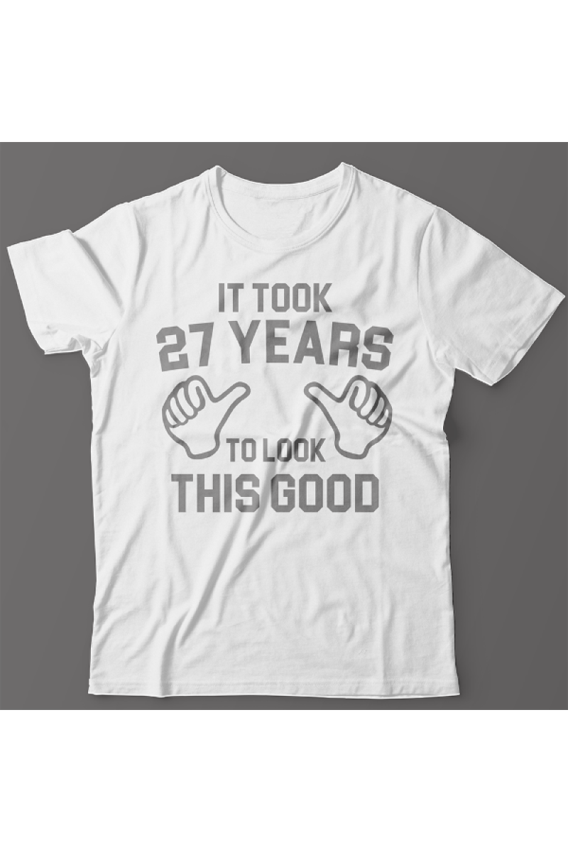 Прикольная футболка с принтом "It took 27 years to look this good" - "Мне понадобилось 27 лет чтобы выглядеть так хорошо".