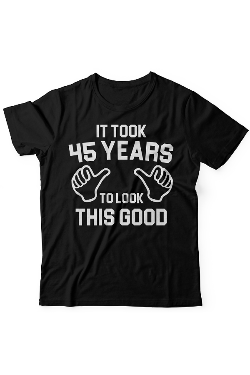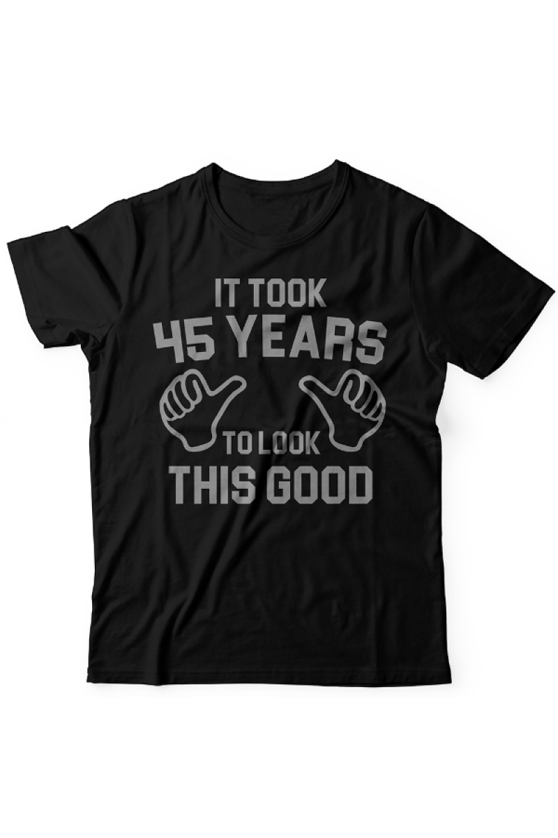 Прикольная футболка с принтом "It took 45 years to look this good" - "Мне понадобилось 45 лет чтобы выглядеть так хорошо".
