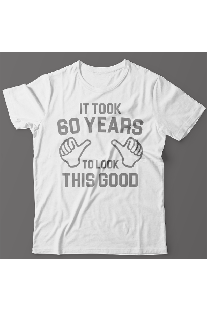 Прикольная футболка с принтом "It took 60 years to look this good" - "Мне понадобилось 60 лет чтобы выглядеть так хорошо".