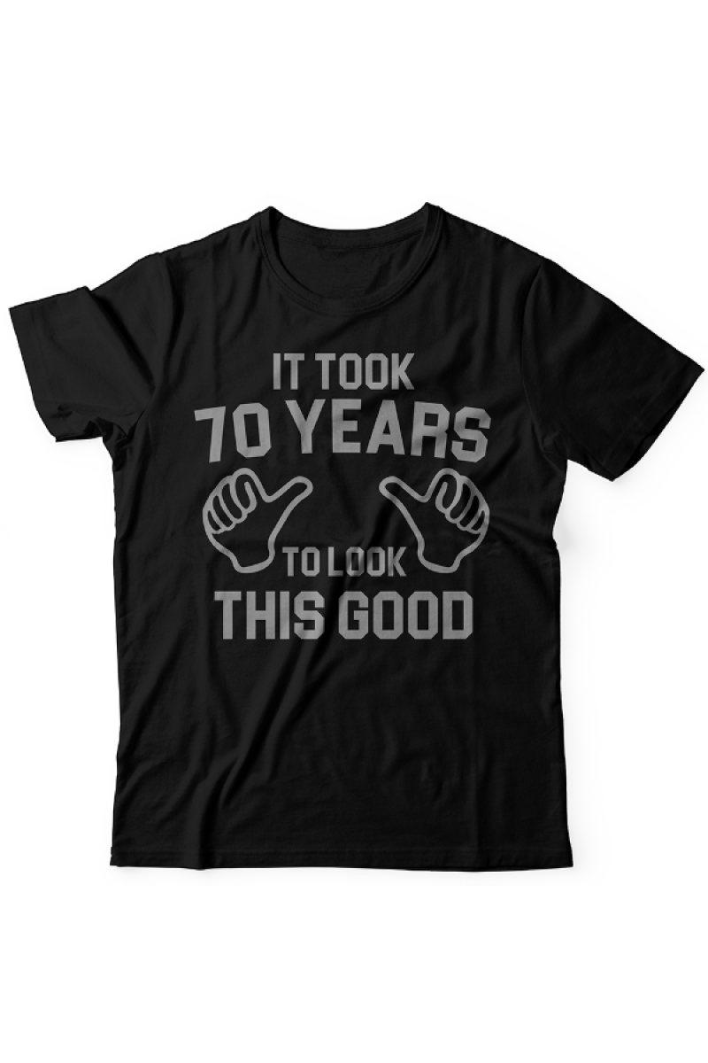 Прикольная футболка с принтом "It took 70 years to look this good" - "Мне понадобилось 70 лет чтобы выглядеть так хорошо".
