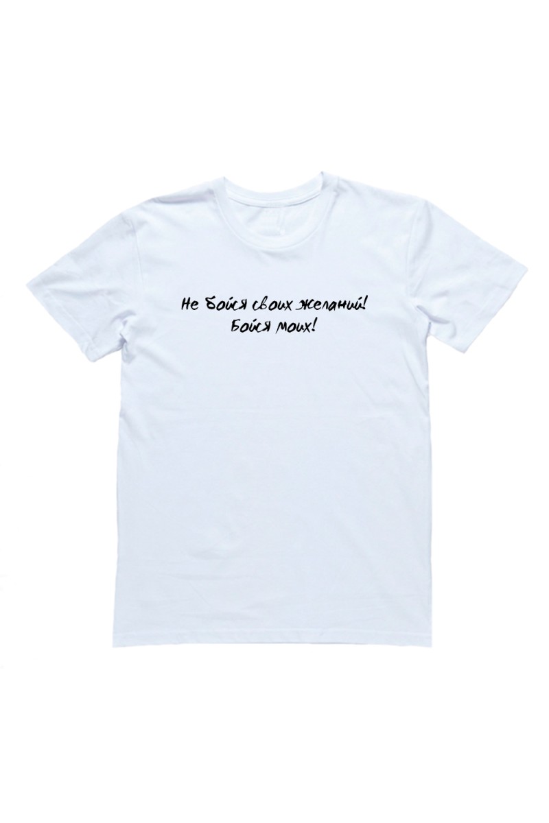 Прикольная футболка с надписью "Не бойся своих желаний. Бойся моих"