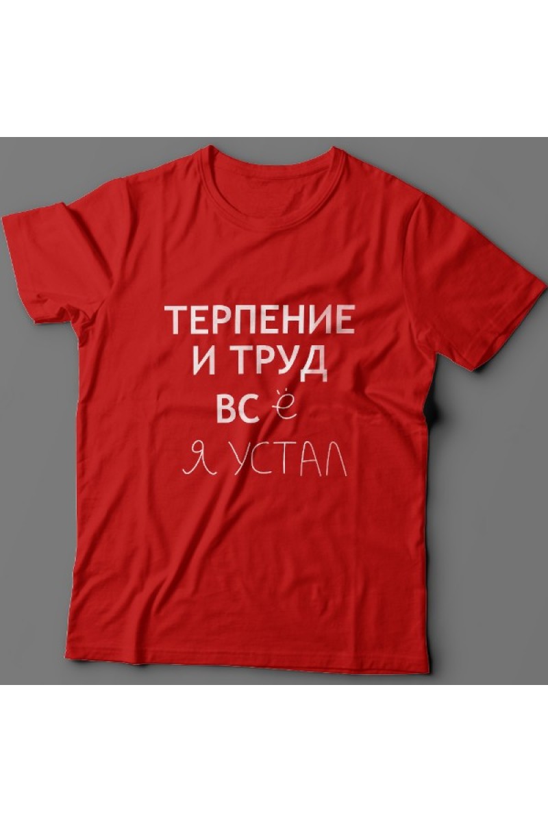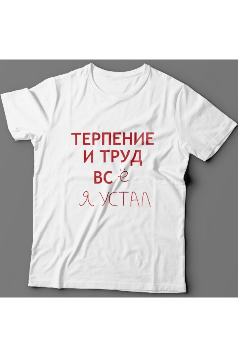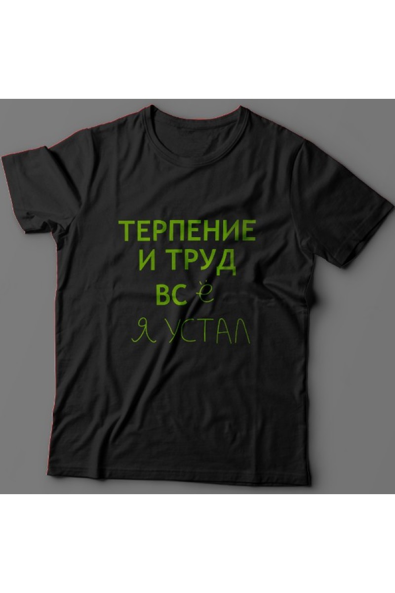 Прикольная футболка с надписью "Терпение и труд всё я устал"