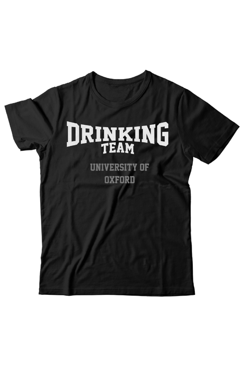 Прикольная футболка с надписью "University Of Oxford DRINKING TEAM" в стилистике эксклюзивной одежды американских университетов.
