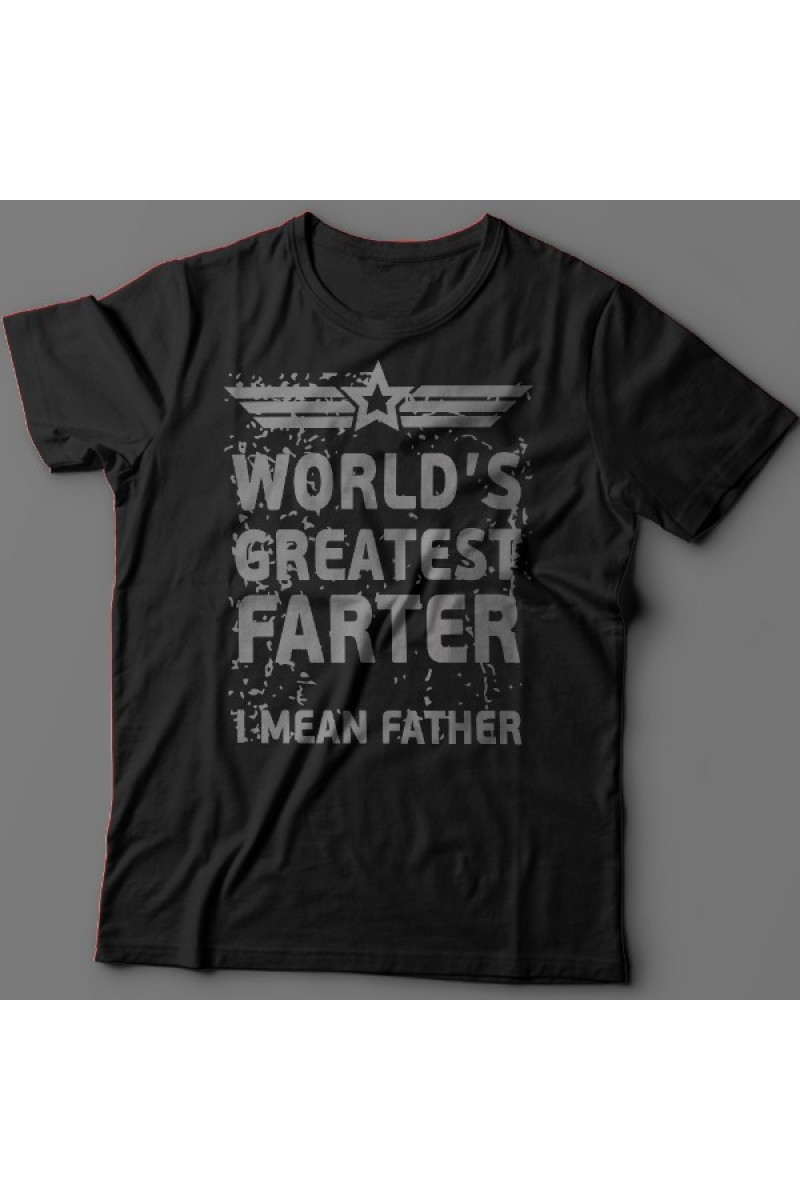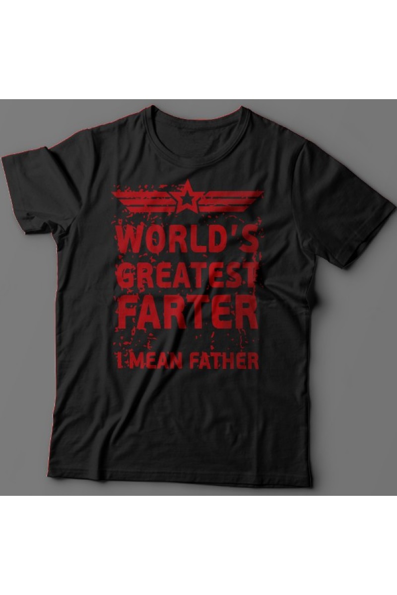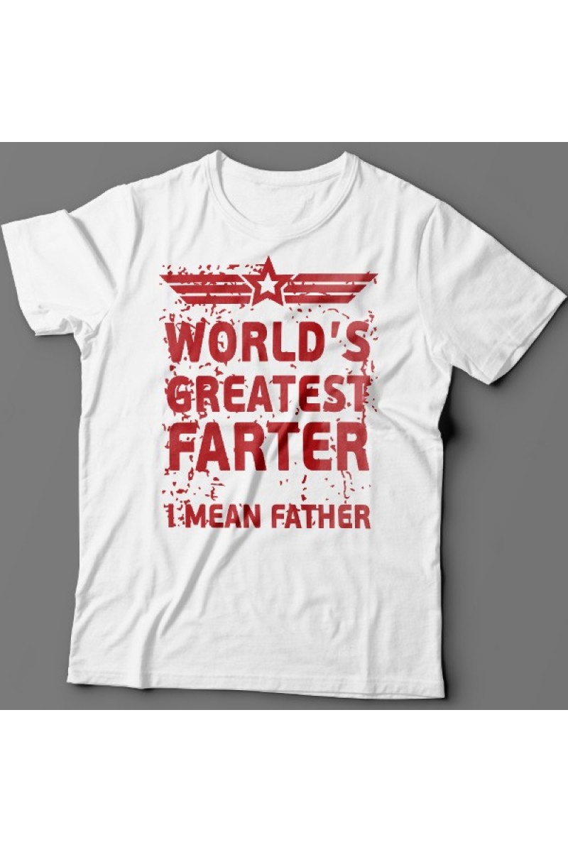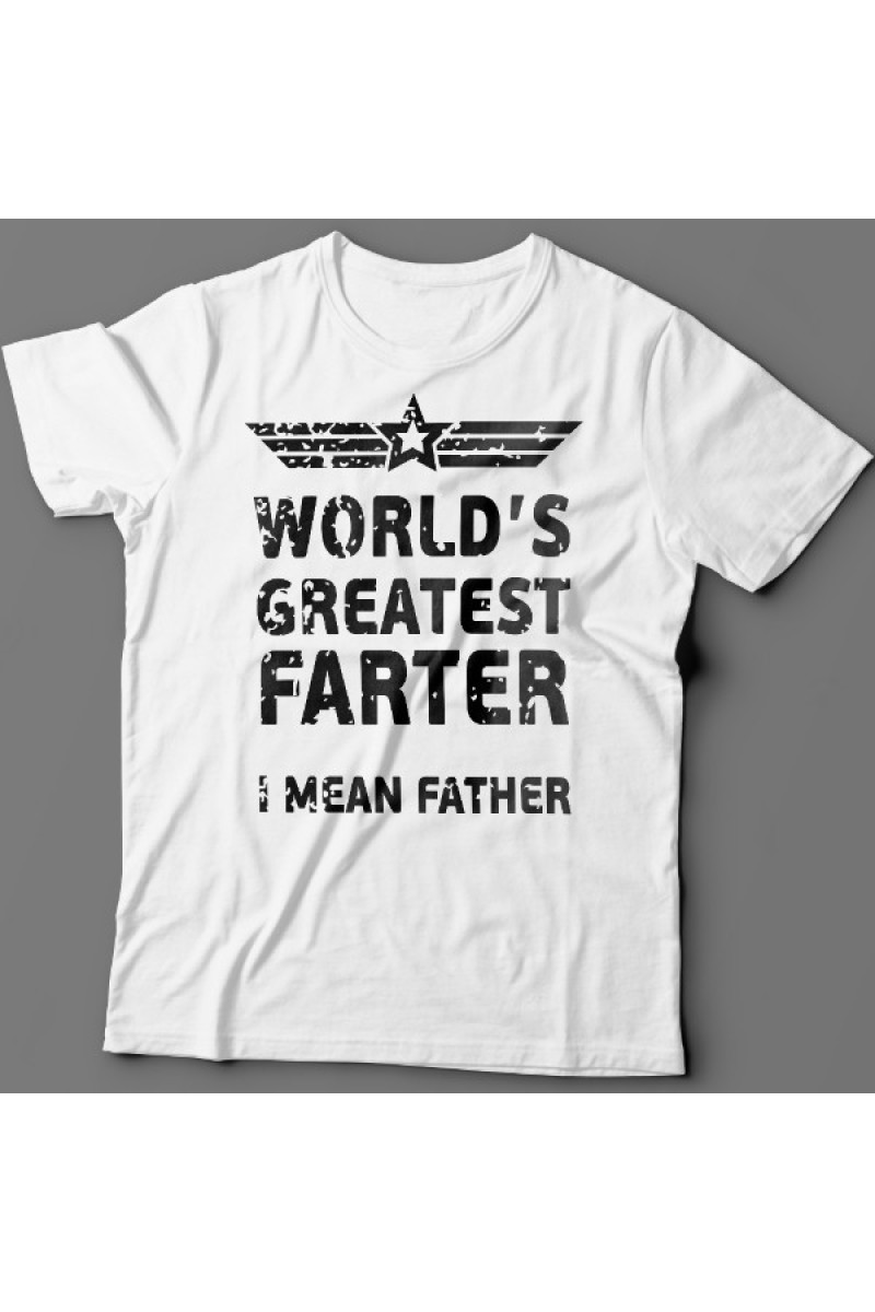 Смешная футболка с надписью "World's greatest farter. I mean father" ("Лучший в мире пердун, я хотел сказать отец")