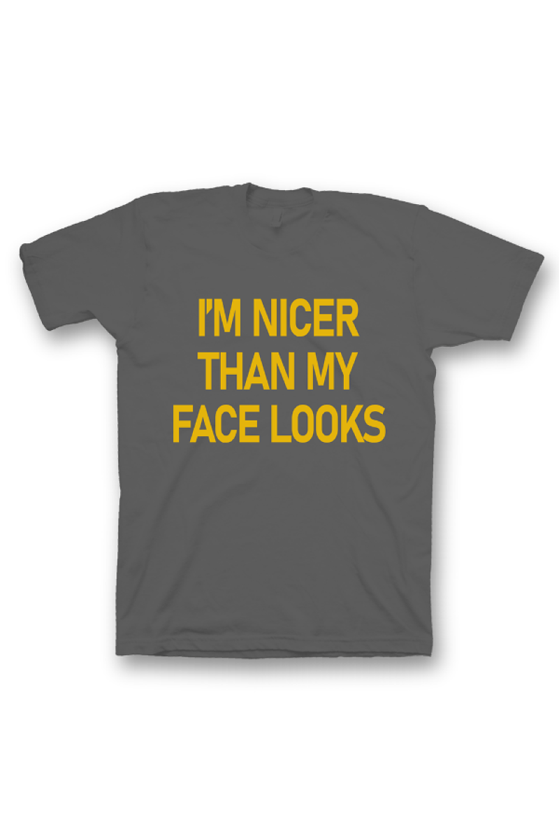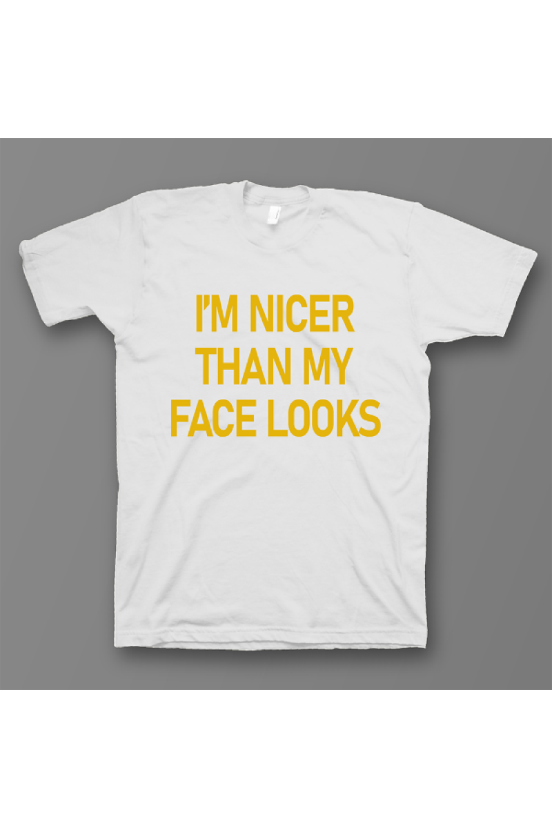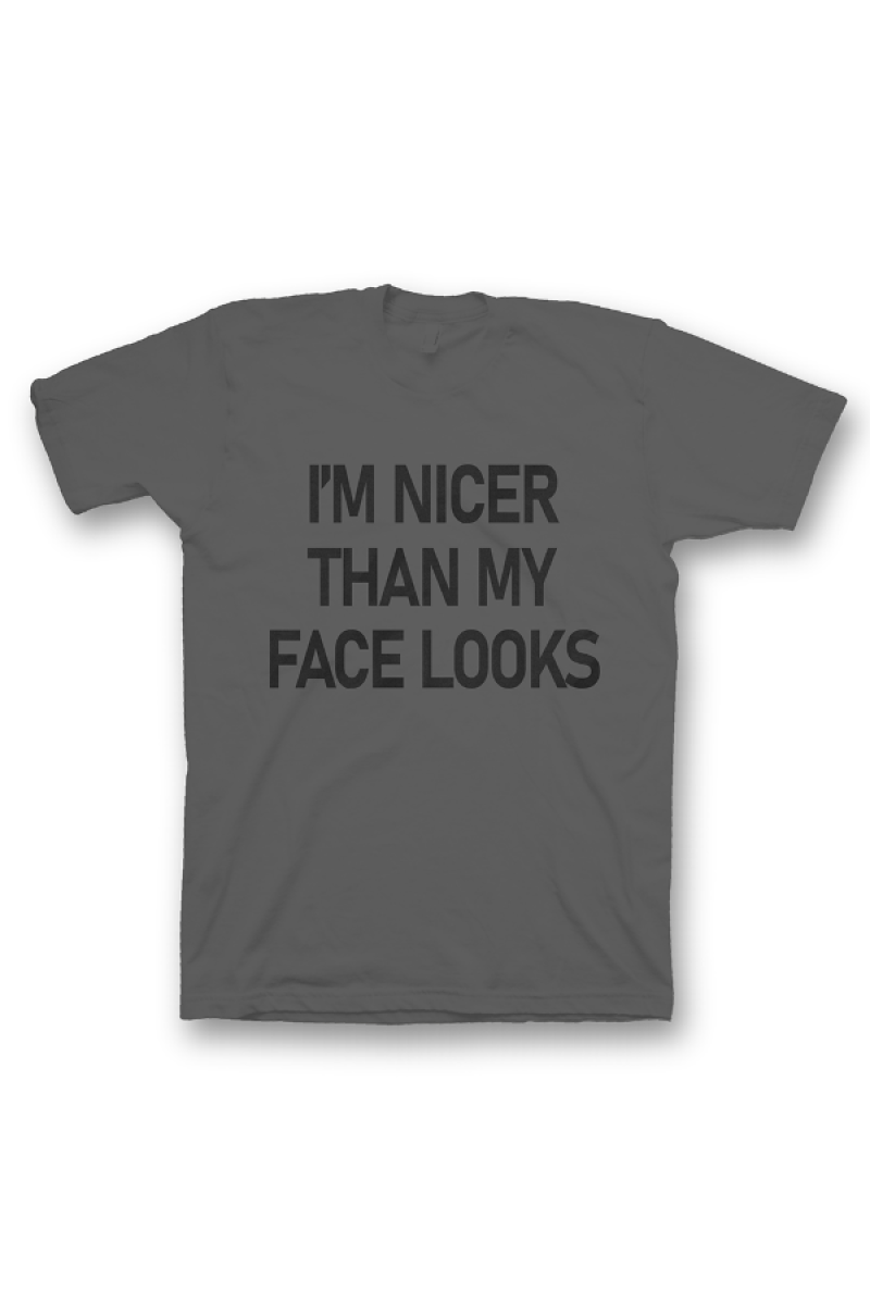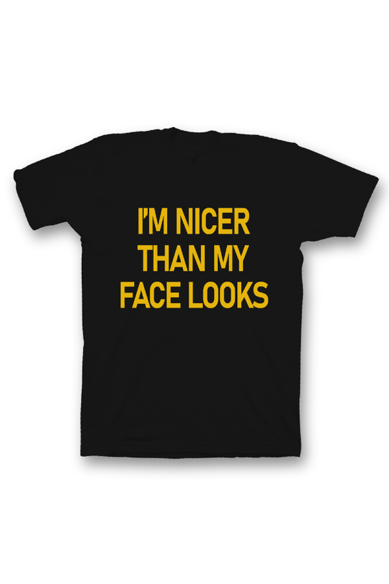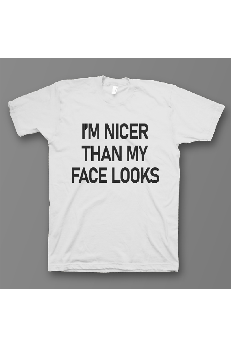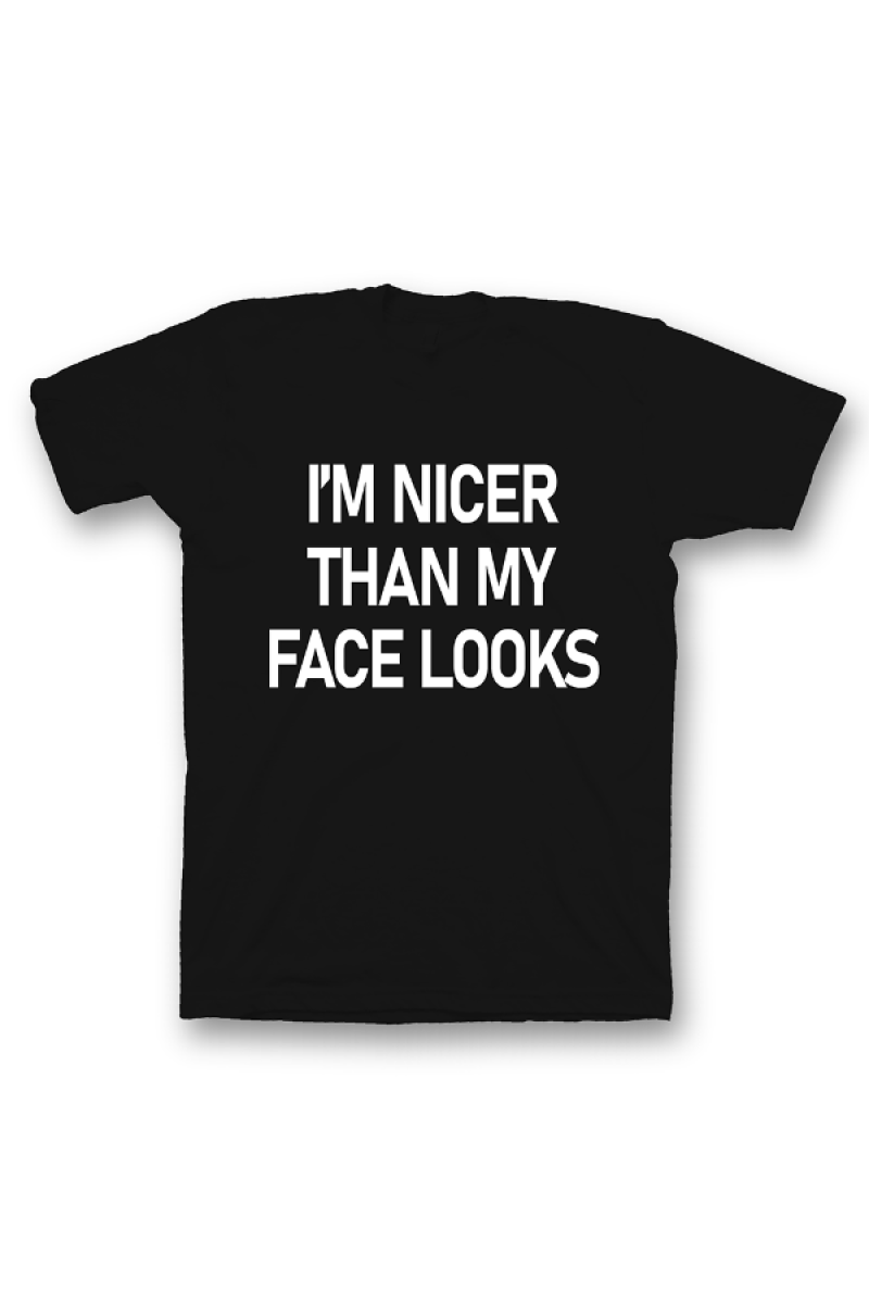 Прикольная футболка с принтом "I'm nicer than my face looks" - "Я лучше, чем выглядит мое лицо".