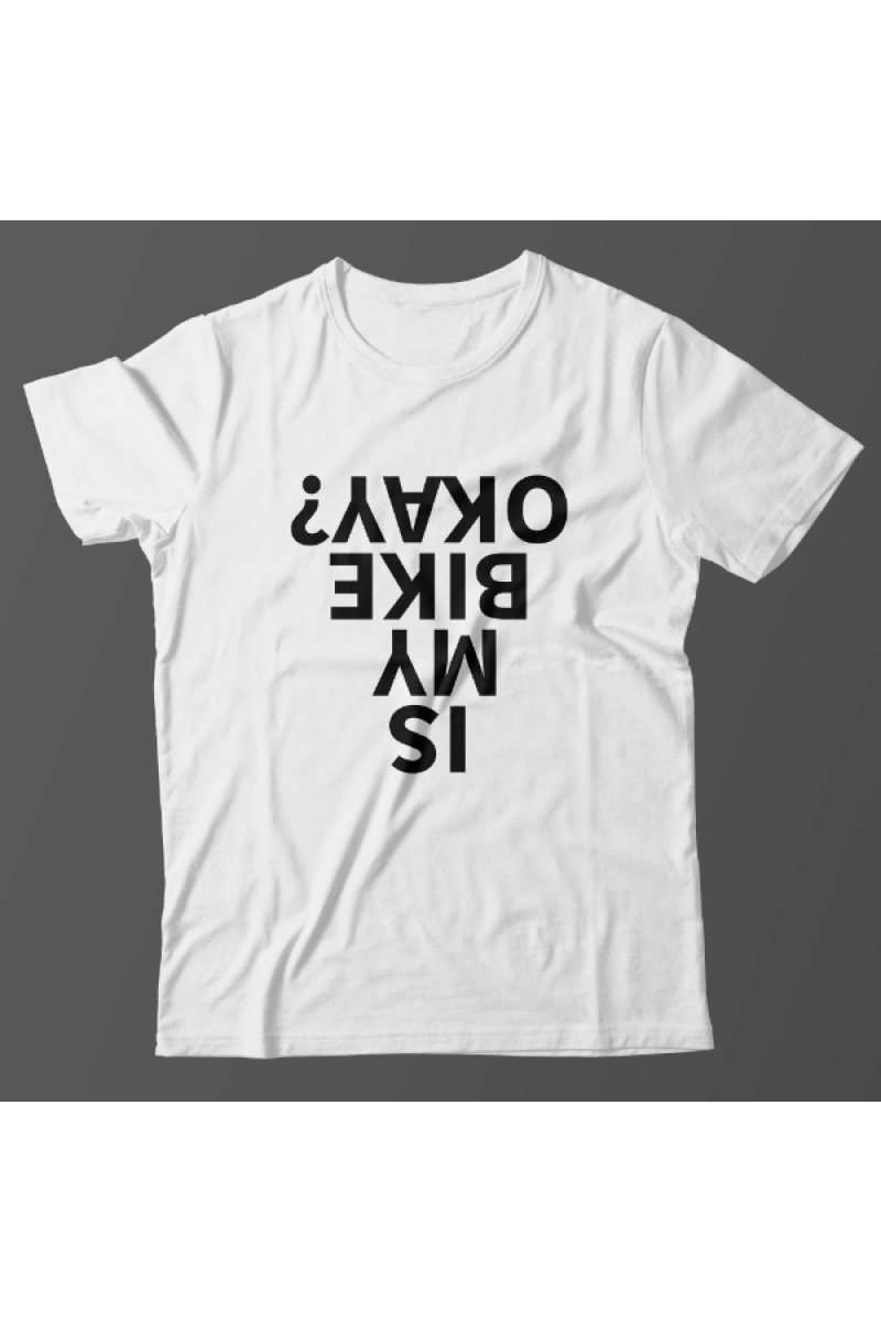 Прикольная футболка с маленьким принтом "Is my bike okay?"